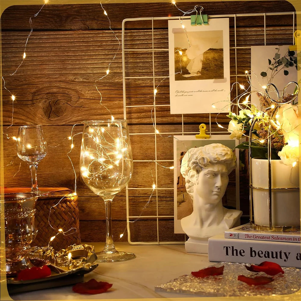 10pcs LED String Light Battery Operated Copper Wire Fairy Lights Festive Decoration With Flashing Modes Home Decor