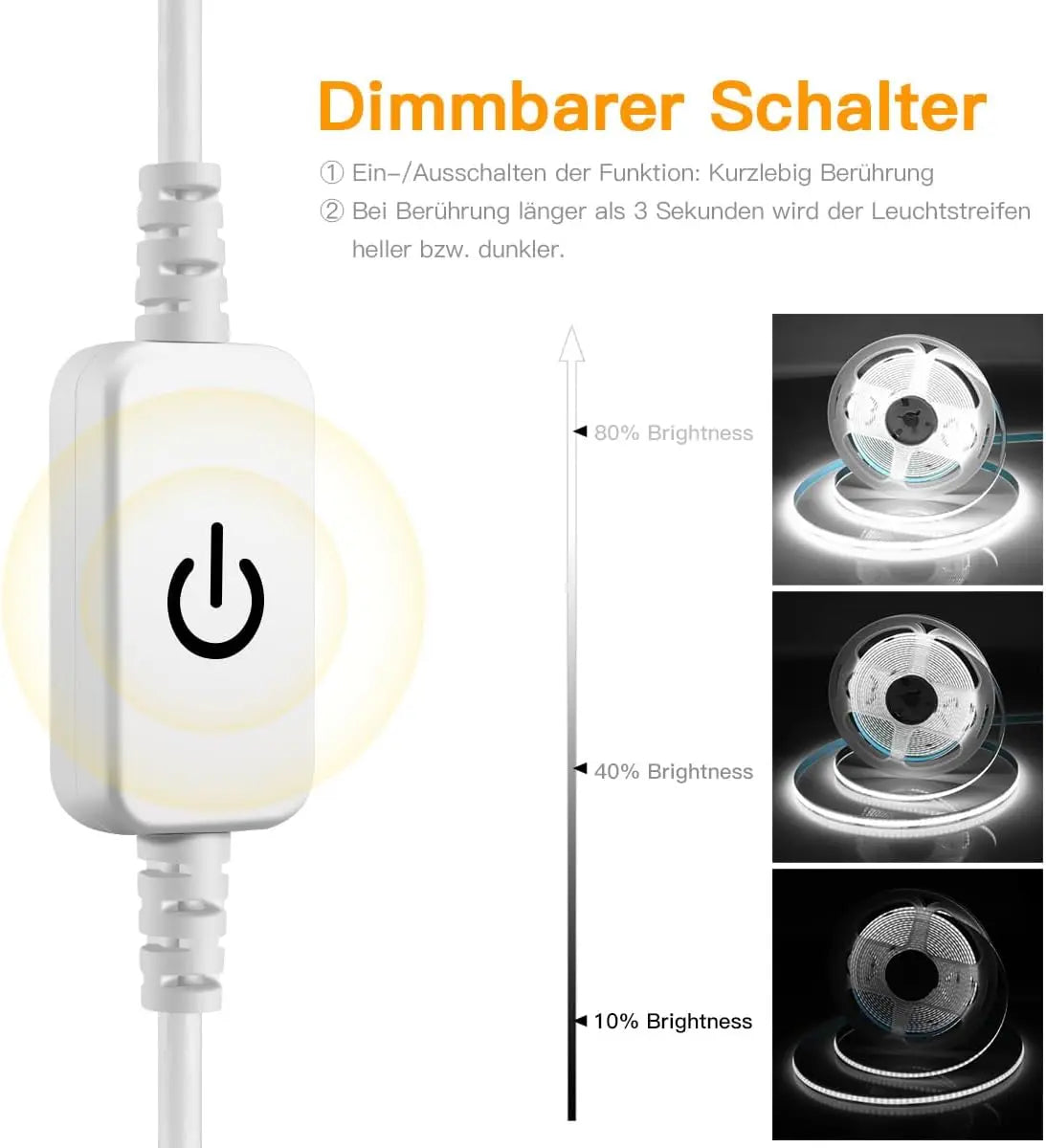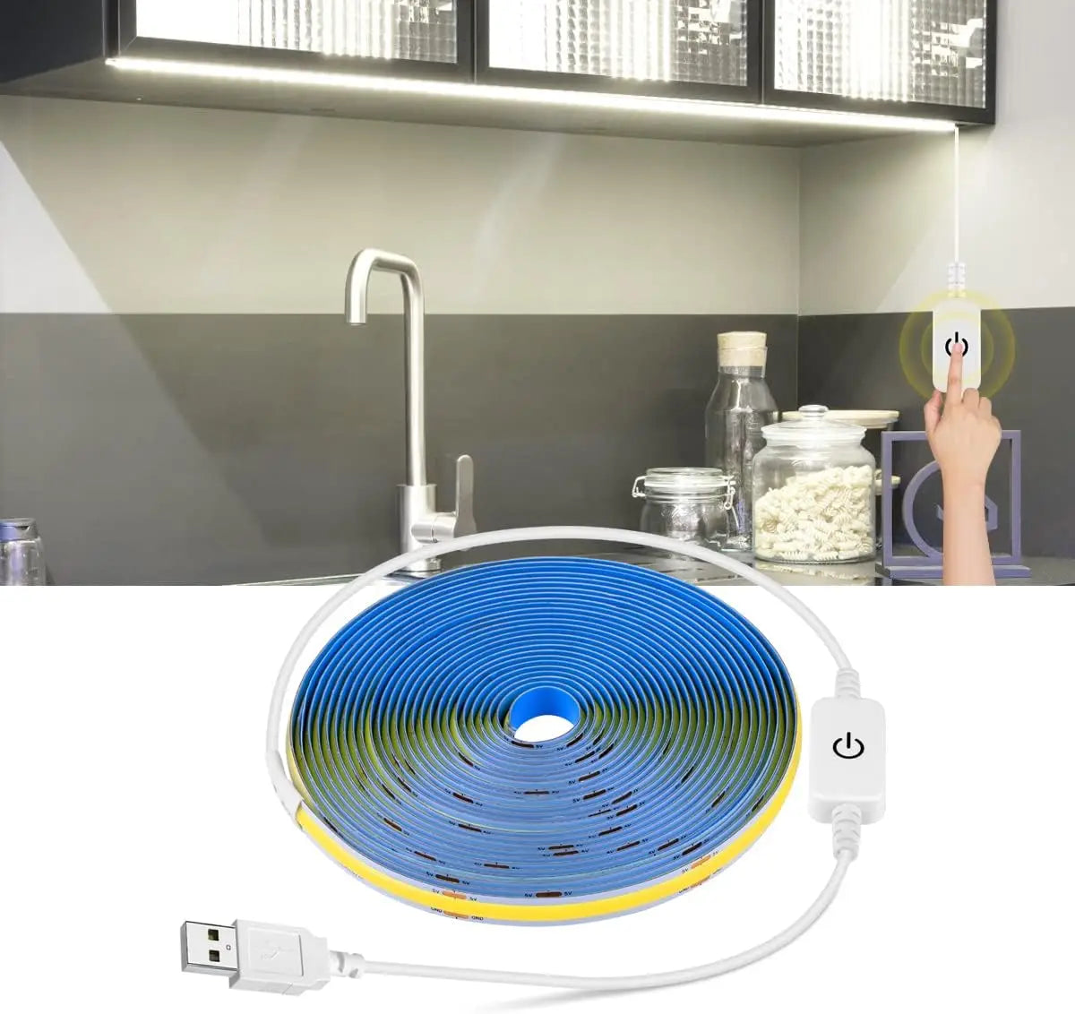 1M-5M USB LED Strip Light 5V 320LEDs/M COB Touch Sensor Dimmable Lamp Tape DIY TV Mirror Backlight Kitchen Room Night Lighting
