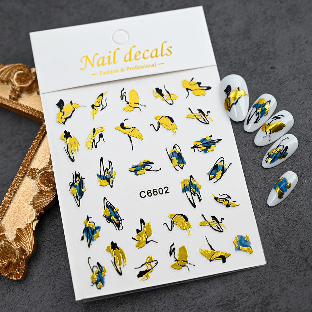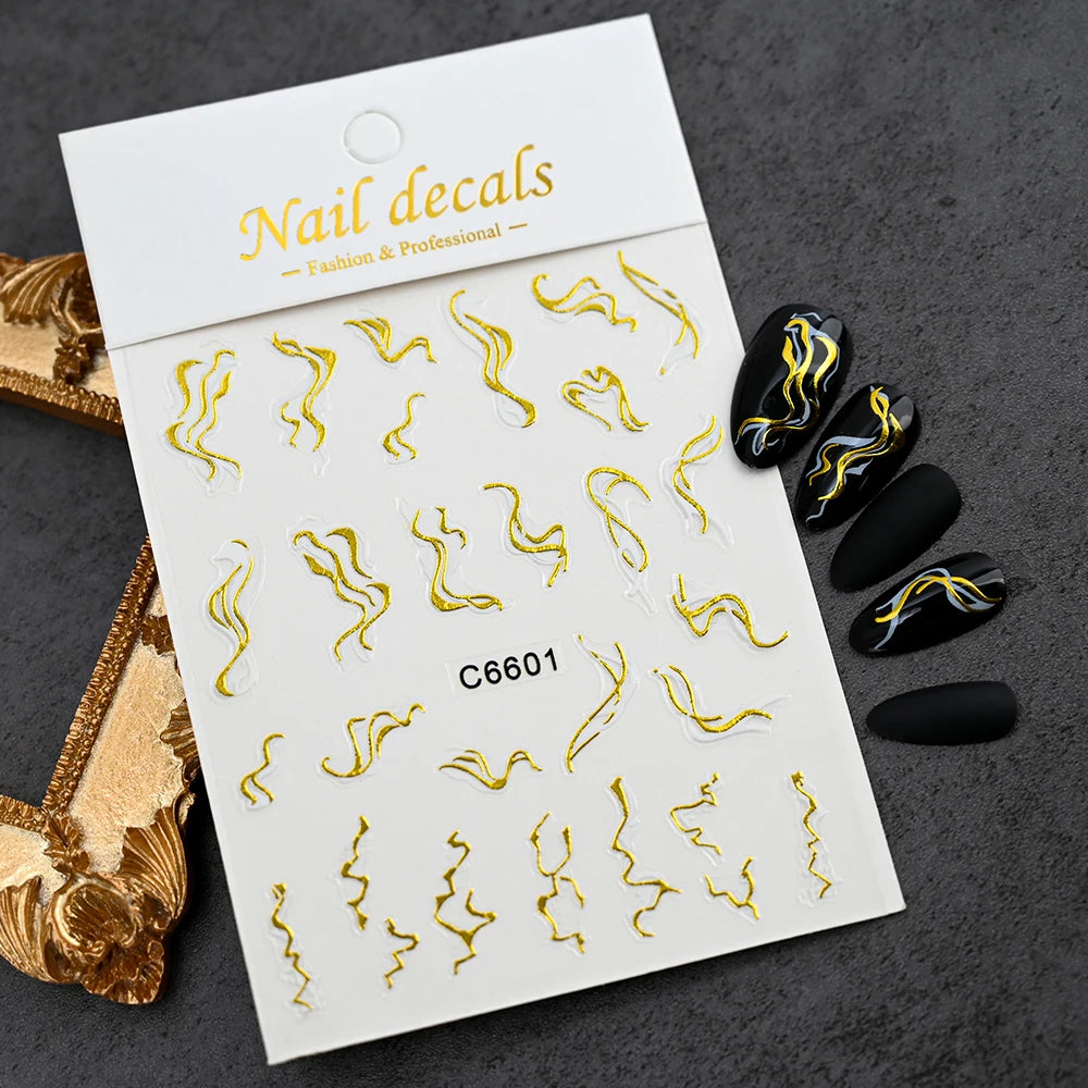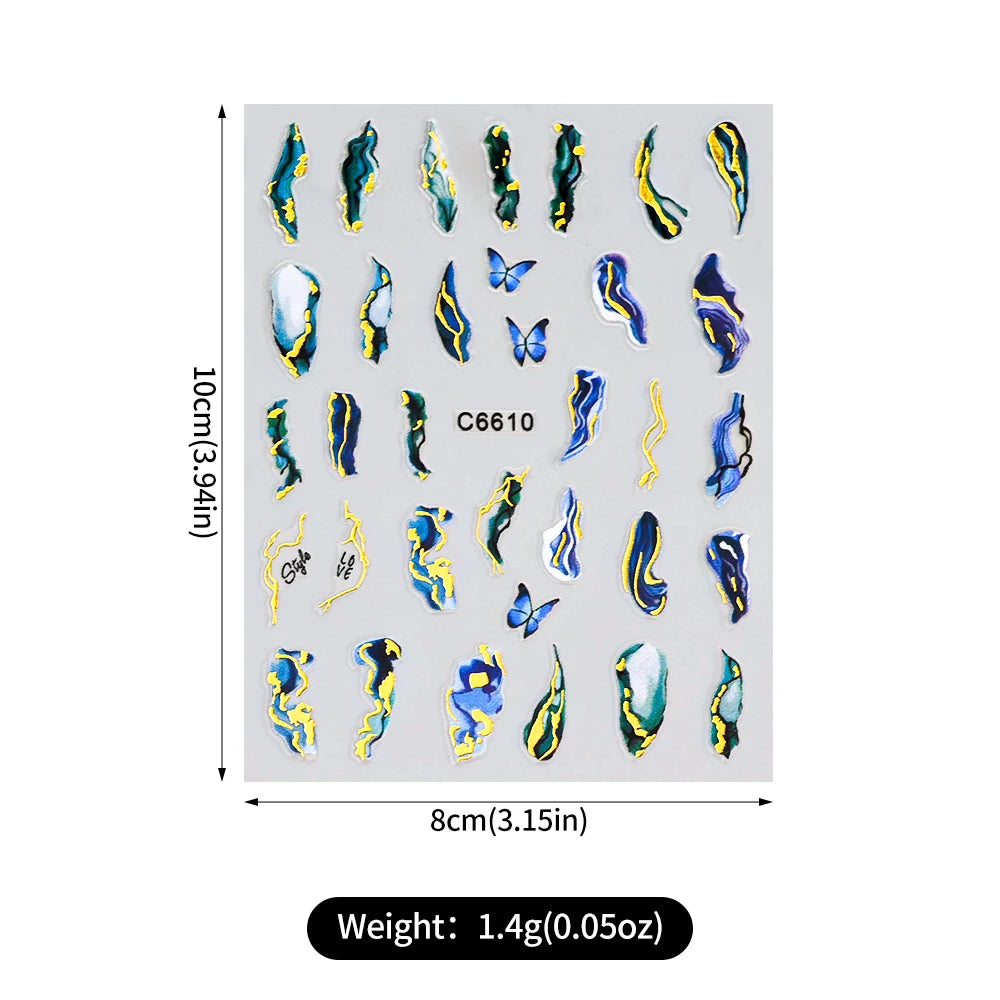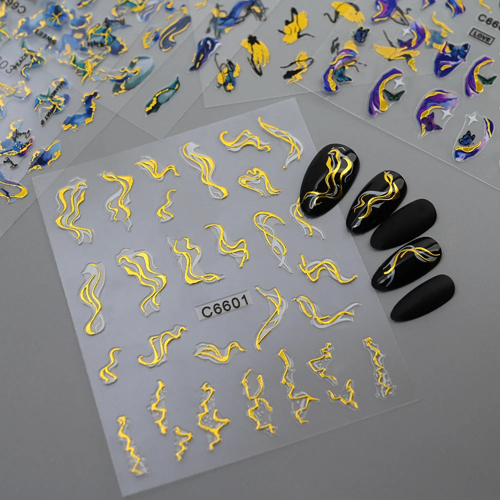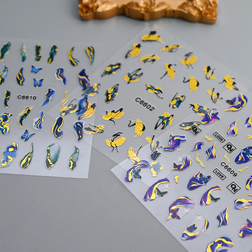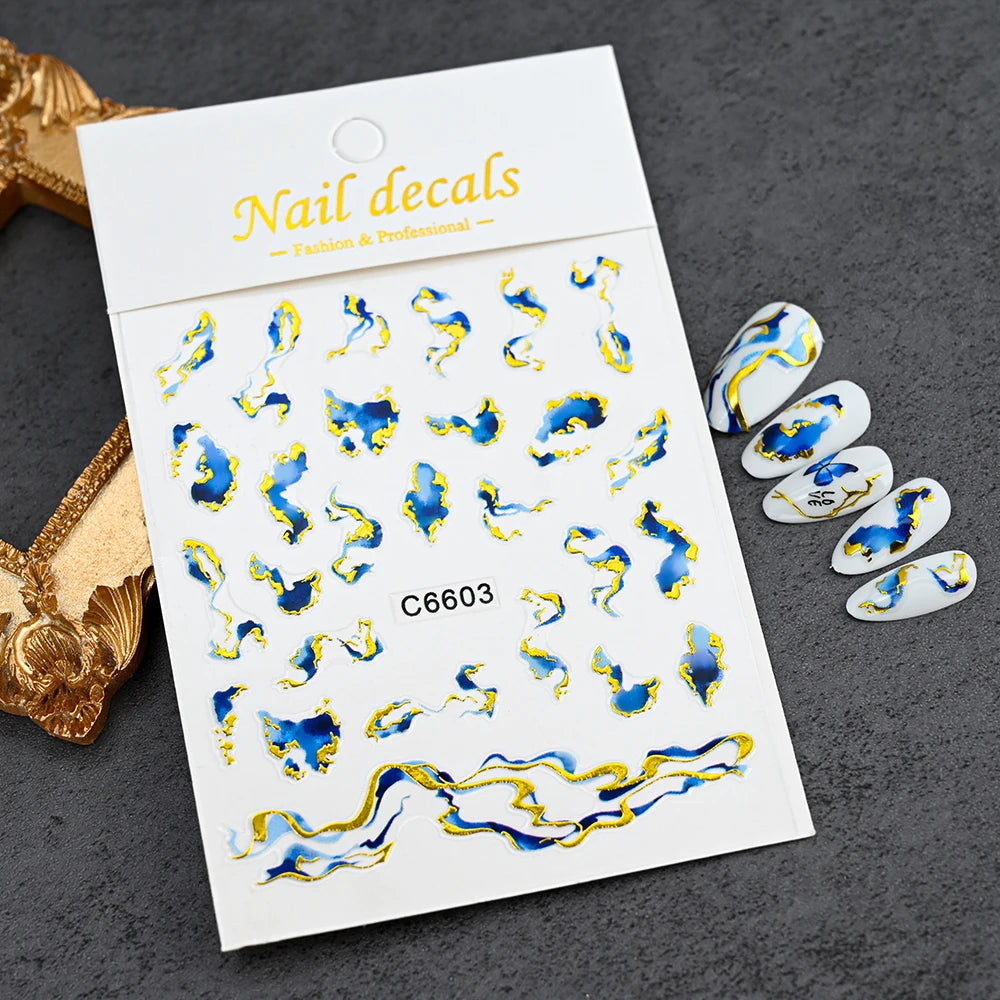 1Pcs Blue Purple Marble Stripe 3D Nail Art Stickers Bronzing Wave Line Ink Blooming Geometry Slider Self-Adhesive Manicure Decal