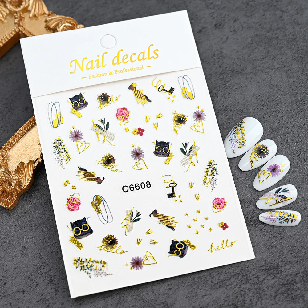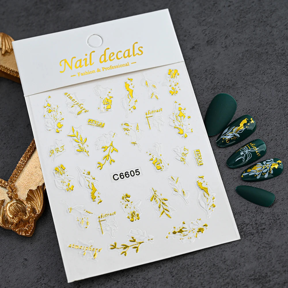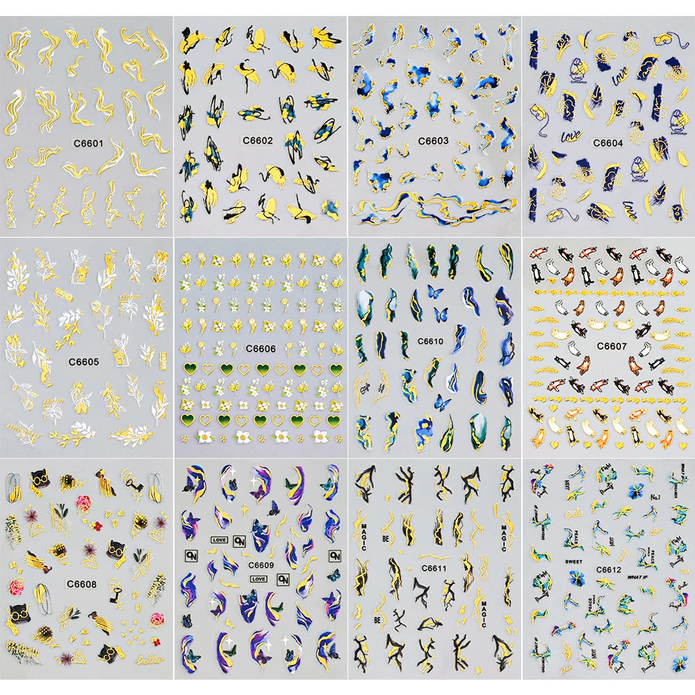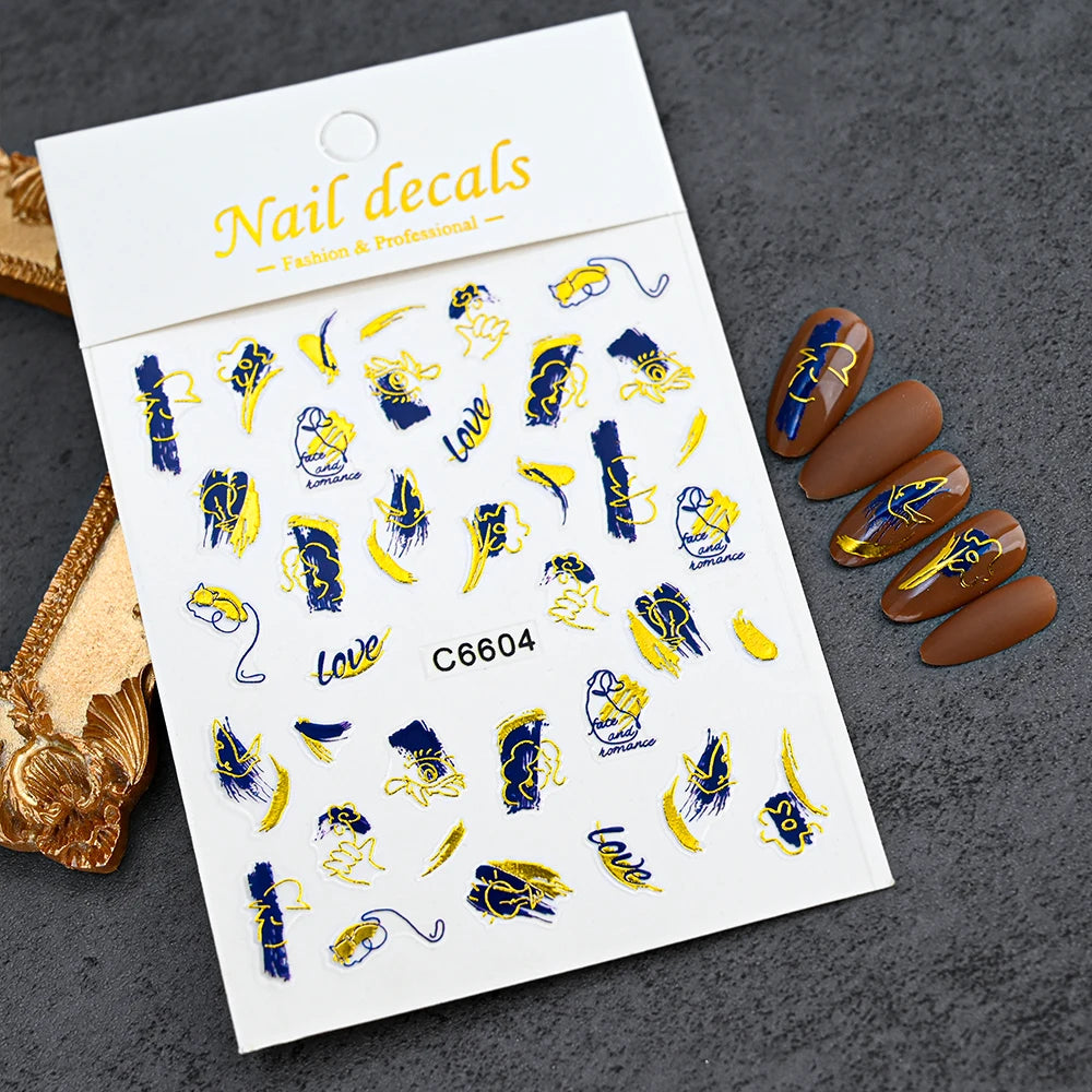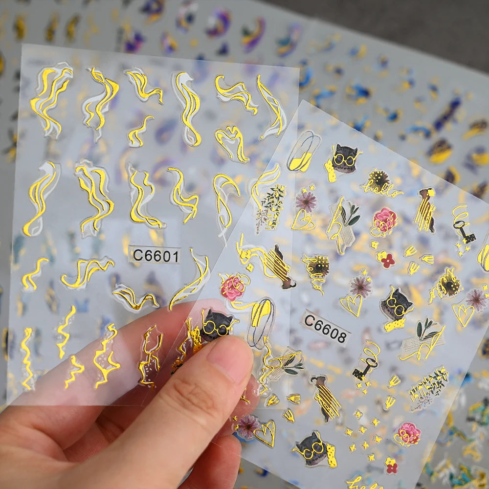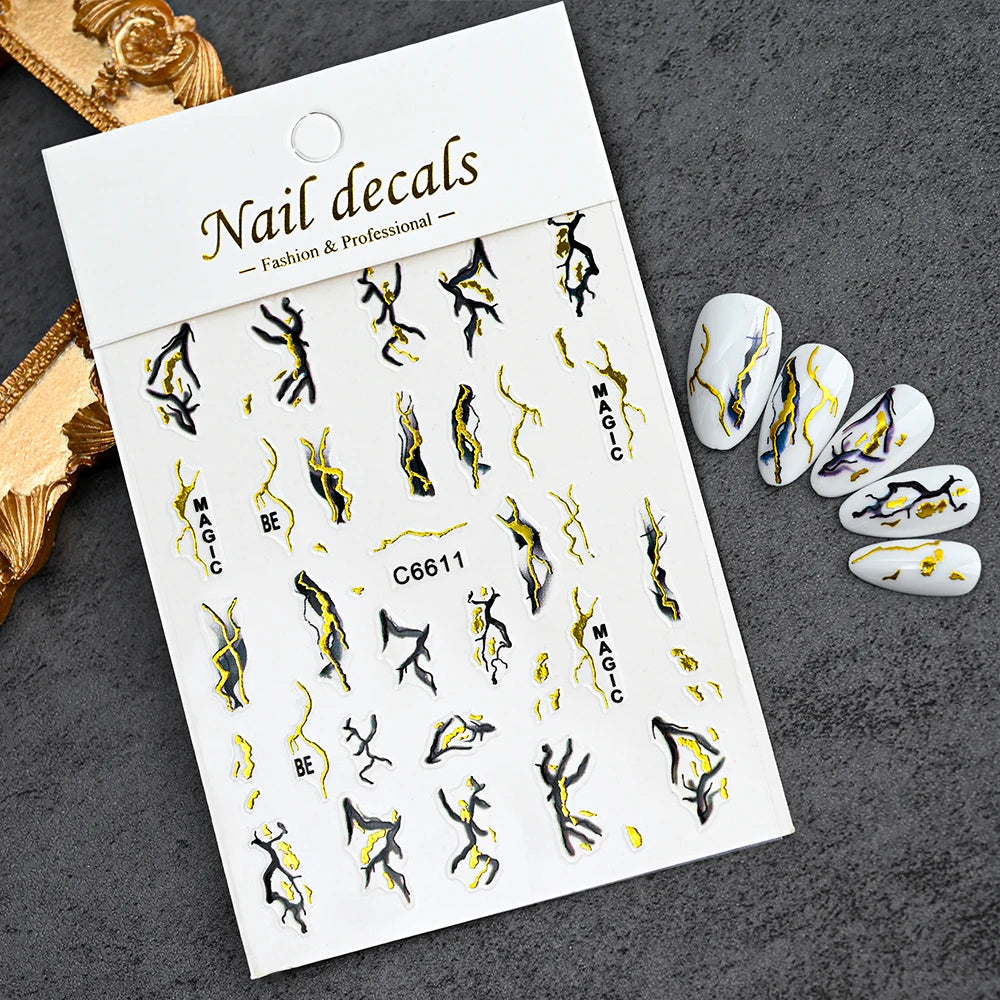 1Pcs Blue Purple Marble Stripe 3D Nail Art Stickers Bronzing Wave Line Ink Blooming Geometry Slider Self-Adhesive Manicure Decal