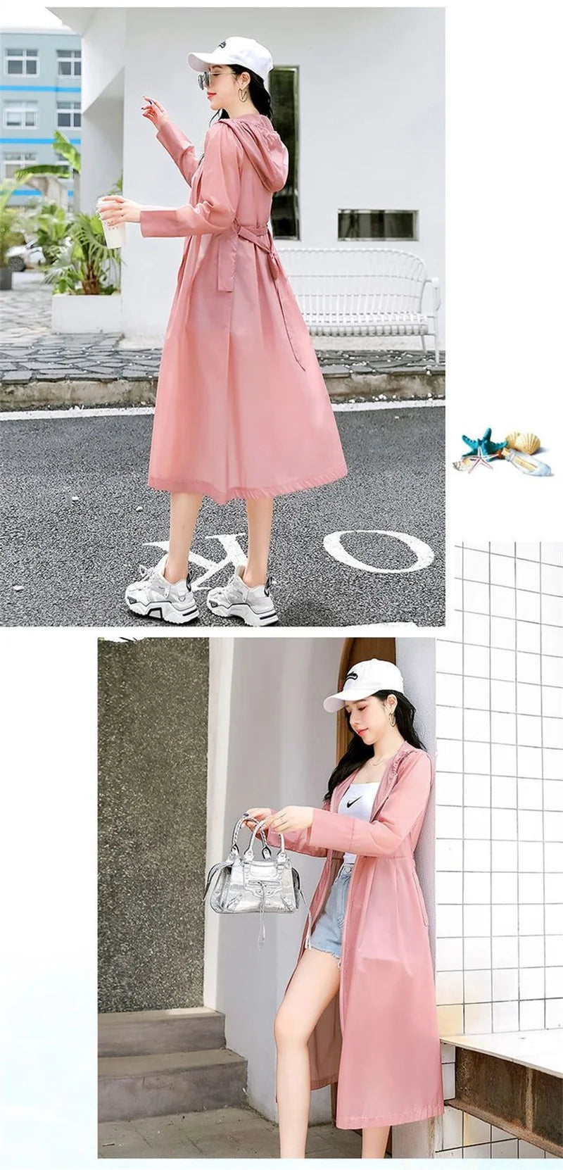 2025Spring Summer New Sunscreen Jacket Ladies Loose Hooded Windbreaker Western-Style Long Sun Protection Clothing Coat Women Top