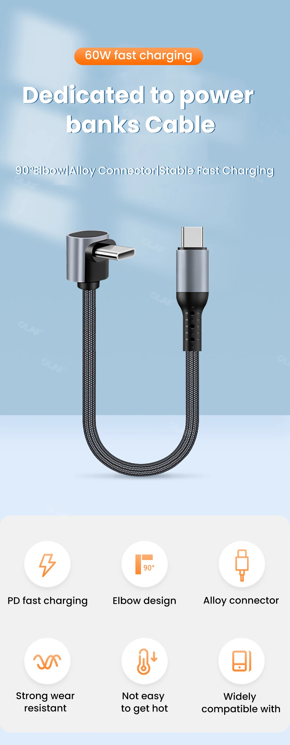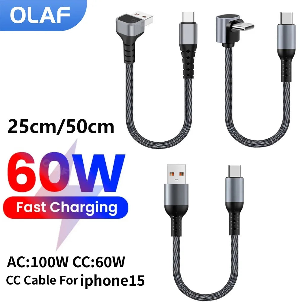 25cm/50cm Short USB Type C to Type C Cable 90 Degree Elbow USB C Cable Fast Charging For iphone 15 Xiaomi Huawei Power Bank Wire