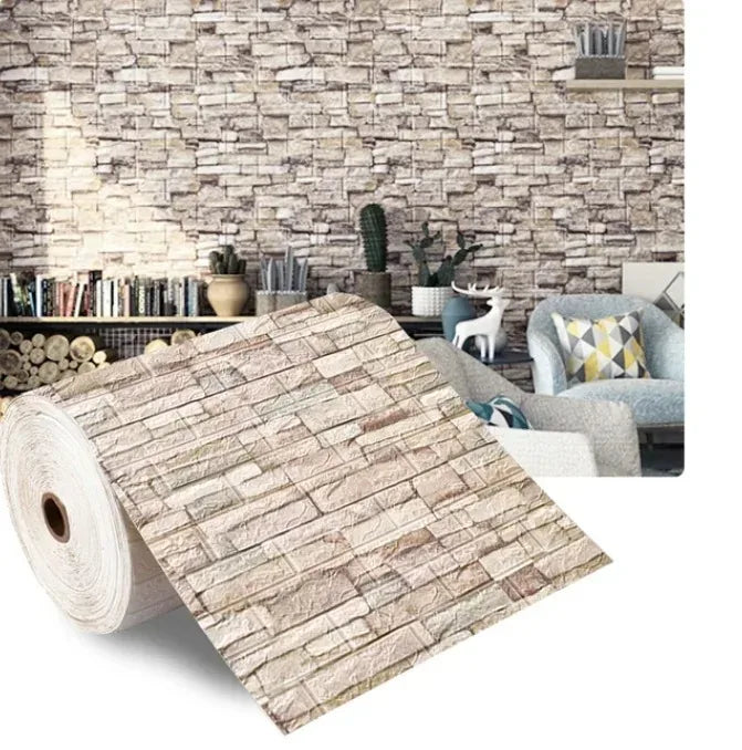 3D Self-Adhesive Wallpaper Continuous Waterproof Brick Wall Stickers Living Room Bedroom Children's Room Home Decoration