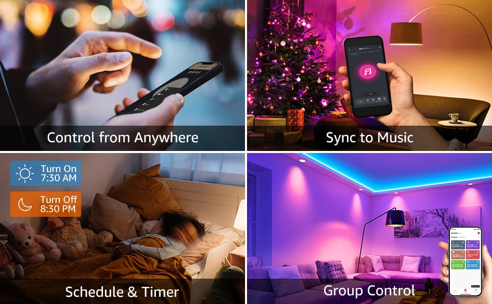 4 Pack Smart WiFi LED A19 Bulb, RGBCW Color Changing, Compatible with Alexa & Google Home & Echo Assistant