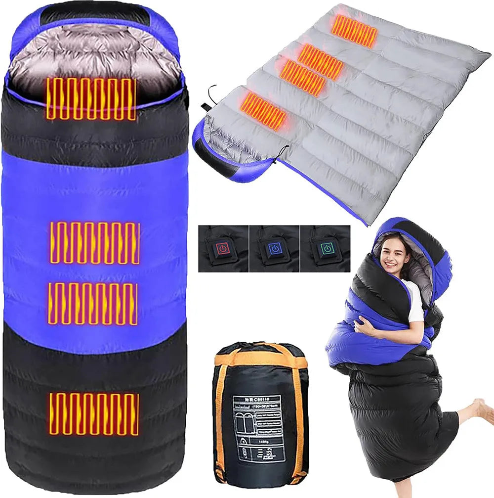 -5℃ USB Heated Sleeping Bag Winter Wearable Adult Electric Thermal Warm 4 Season Outdoor Camping Hiking Traveling(NO Power bank