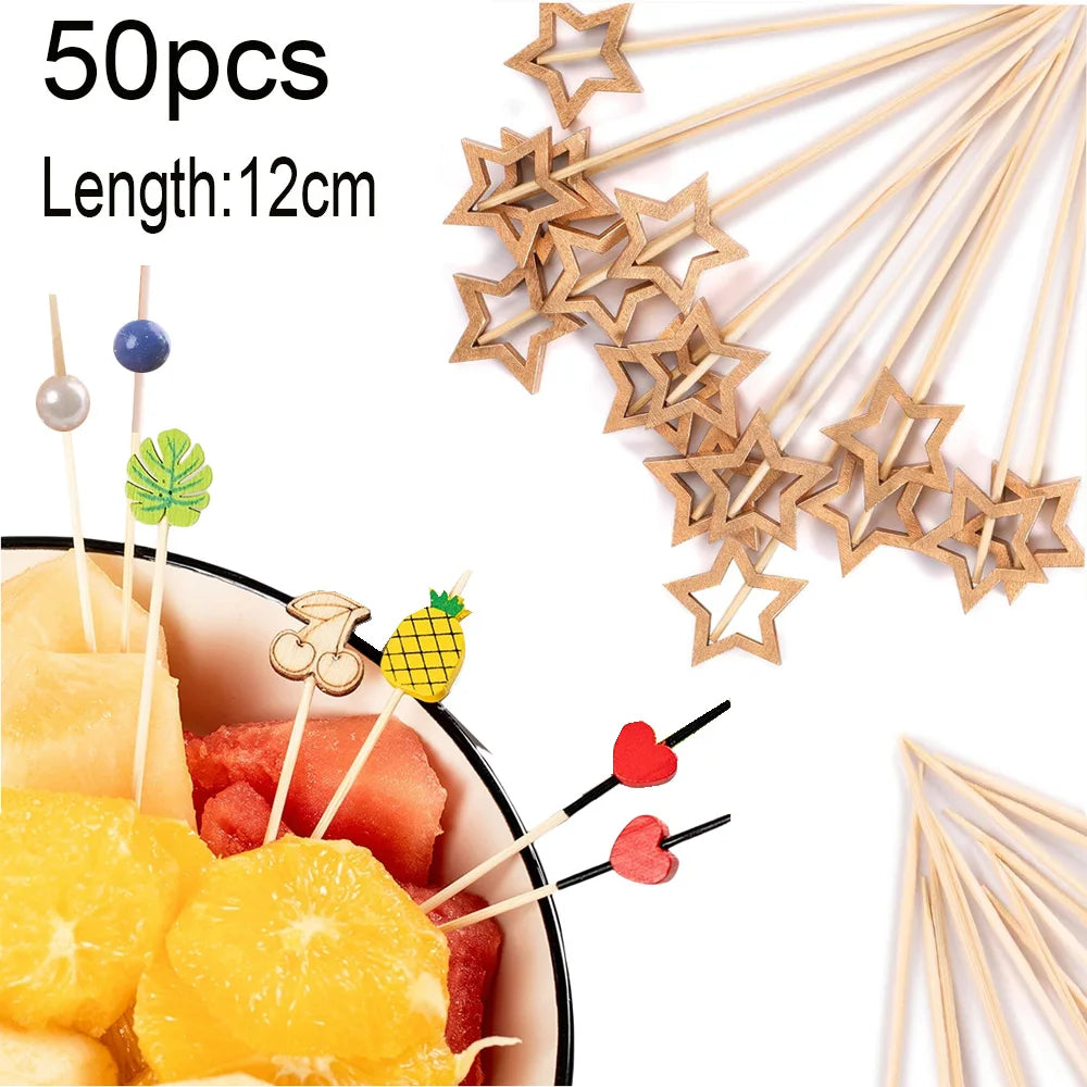 Packaging content: Different styles of toothpicks, fruit and dessert wooden picks