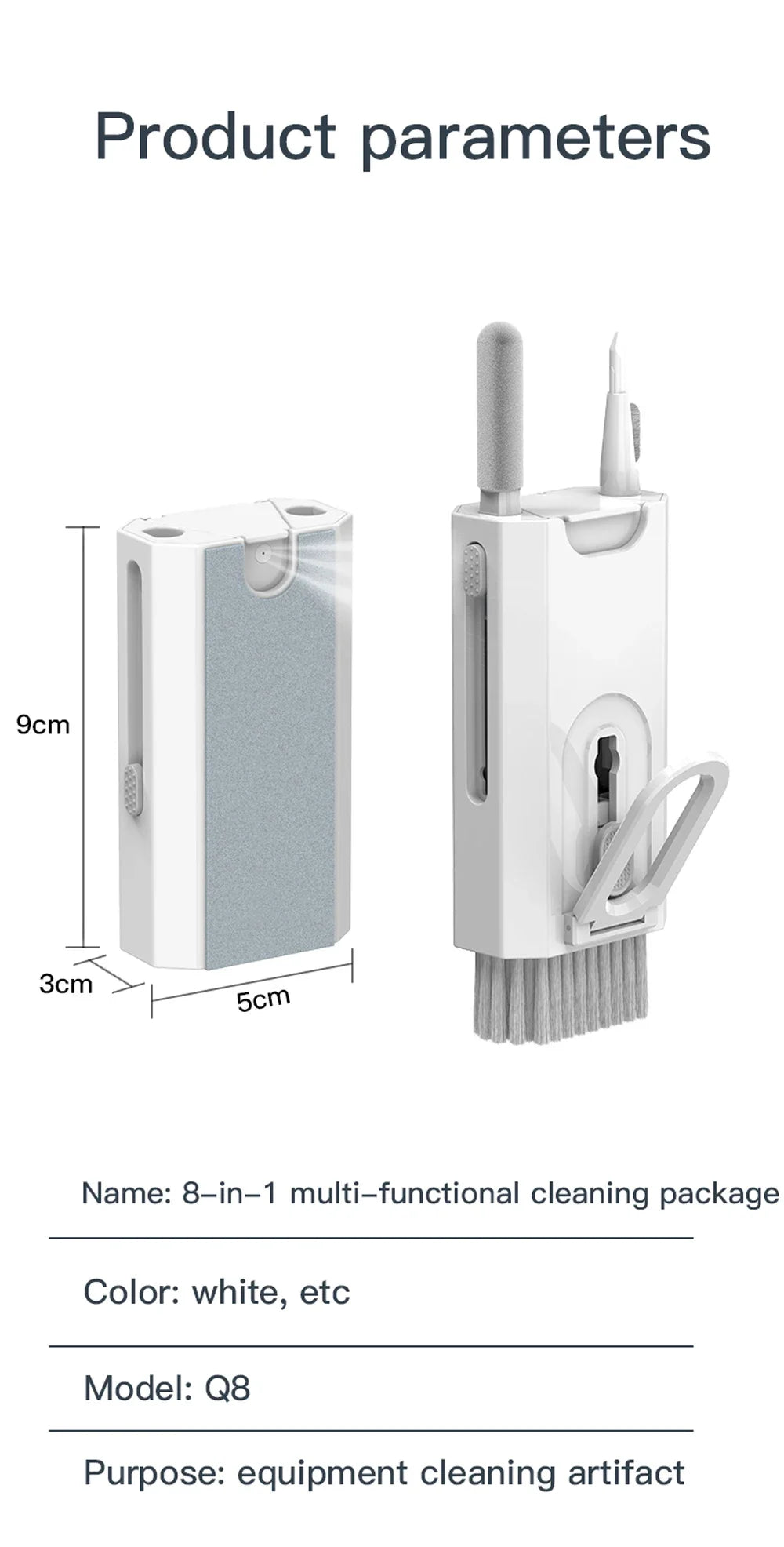 • 8 in 1 cleaning kit :This kit includes eight different tools to help you clean your computer, tablet, laptop, TV screen, and mobile phone with ease.