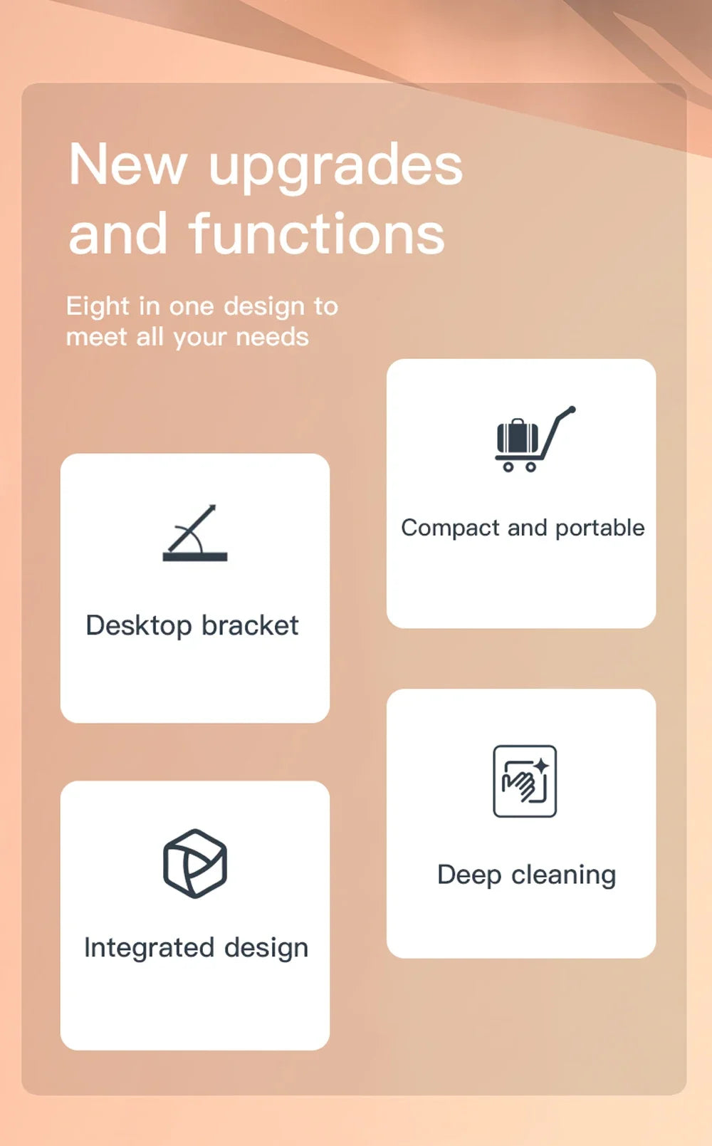 2. Multifunctional design: The pen tip can remove stubborn stains in the gaps between earphones, buttons and other objects without damaging the charging port of the earphones; The brush can remove dirt and dust from the earphone sound hole; Flocking sponge can remove the dust in the headset charging box; The wiping cloth attached to the back of the box is used to clean small areas of dust, such as the mobile phone screen; The mobile phone holder can be used to place the mobile phone; The built-in key puller can be used to pull out the key cap of the mechanical keyboard.