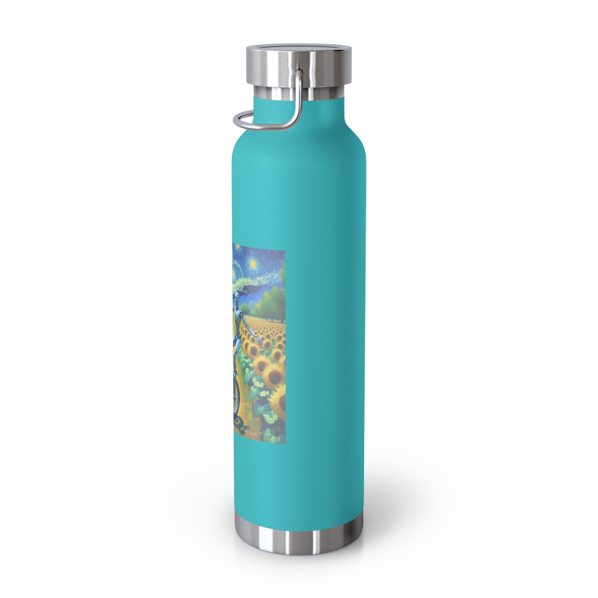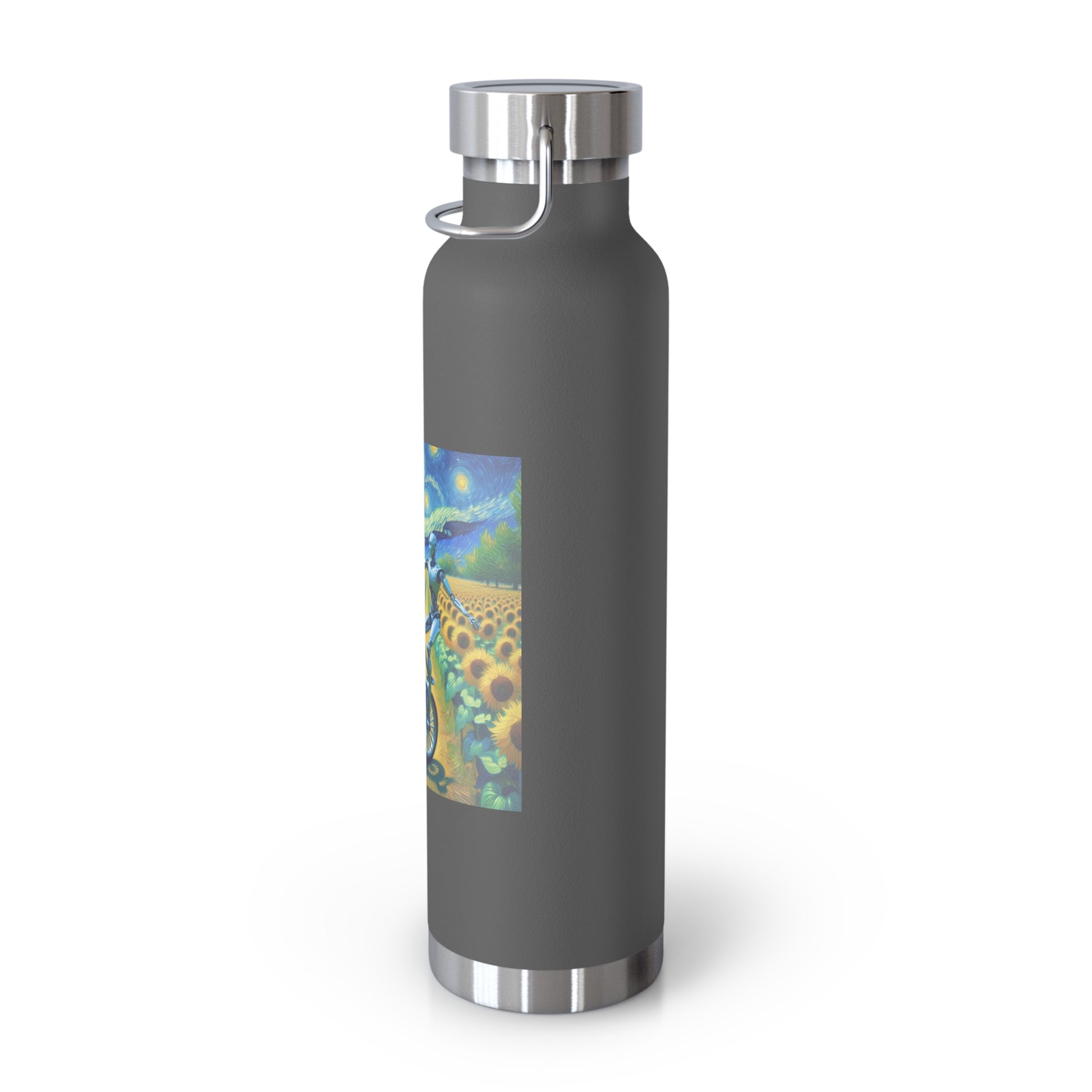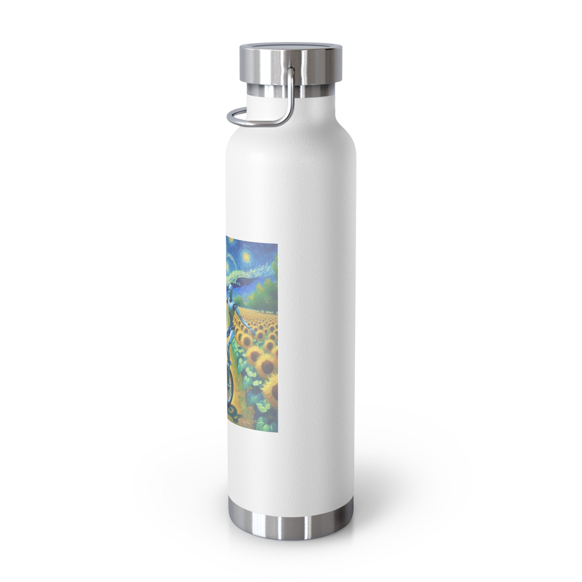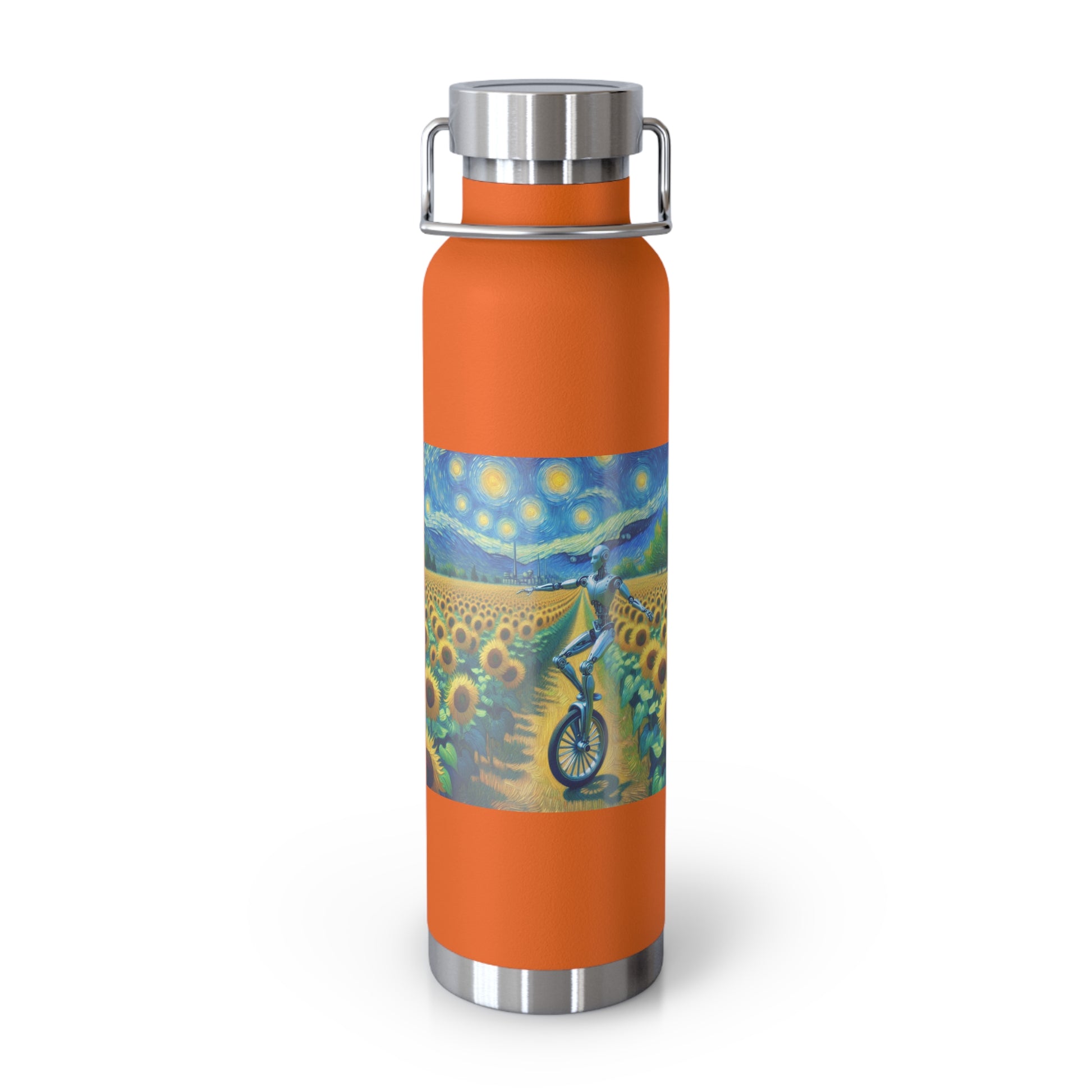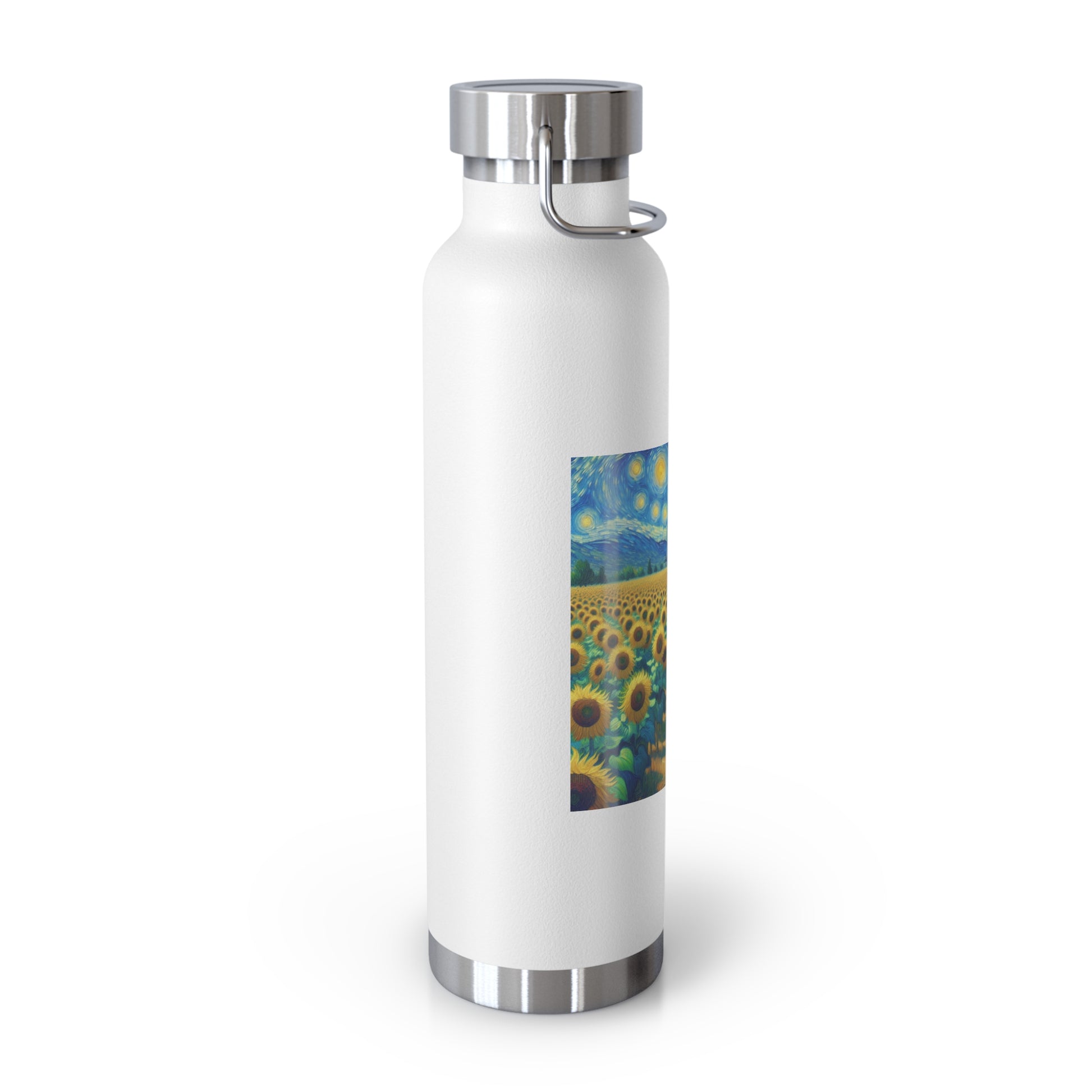 Artistic Copper Vacuum Insulated Bottle - 22oz Sunflower Design, Eco-Friendly Water Bottle, Travel Mug, Gift for Nature Lovers, Camping