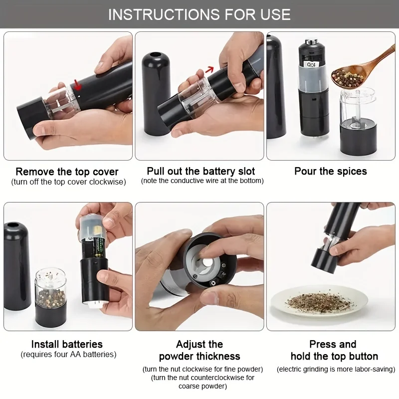 • Automatic Electric Functionality :This pepper grinder and salt mill boasts automatic electric functionality, ensuring a convenient and efficient grinding experience in your kitchen.