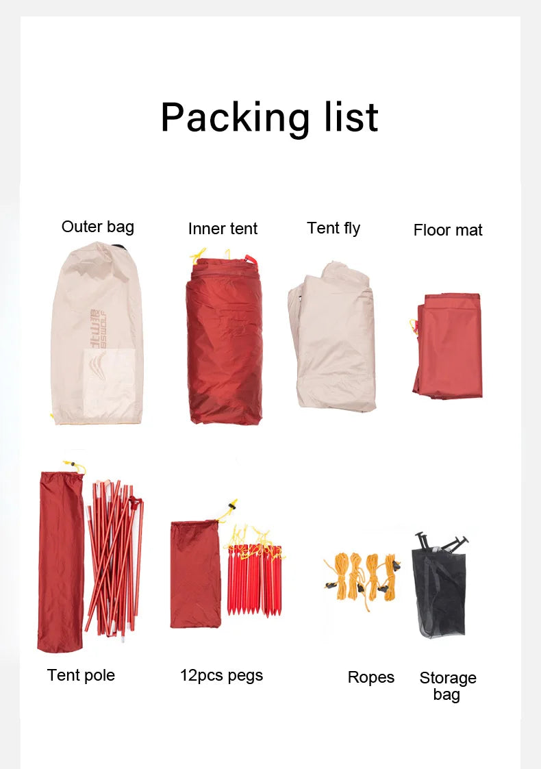 Tent fly:20D 380T Anti-tear Nylon silicone coated PU3000mm W/R