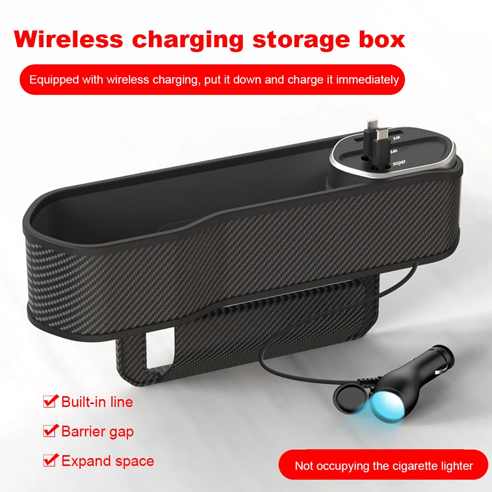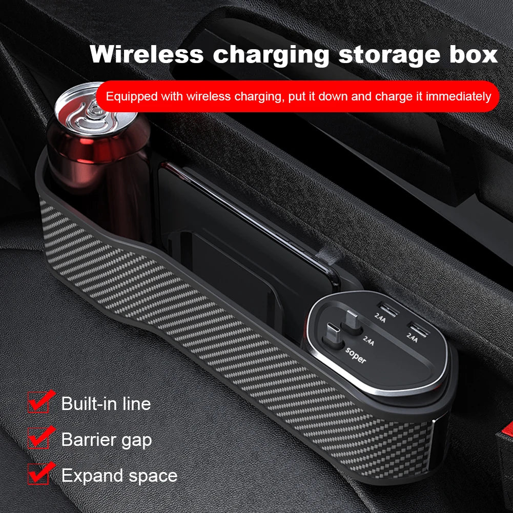 Car Seat Gap Filler Organizer USB Type-C Front Seat Console Side Pocket 10W Car Seat Gap Holder Multifunctional Wireless Charger