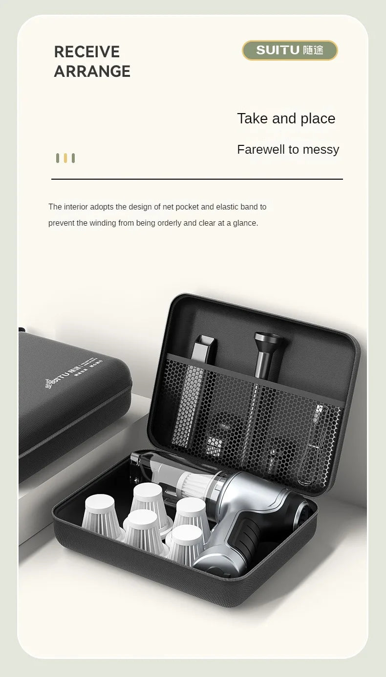 Long-lasting battery life can easily clean up the hygiene in the home car. Dual-core frequency conversion chip can easily handle the cleaning in the car and at home, reasonably release the current under the monitoring and adjustment of intelligent power supply management system, and cooperate with air cooling system to ensure the continuous and excellent operation of battery pack, which can complete the cleaning of a larger area at one time.