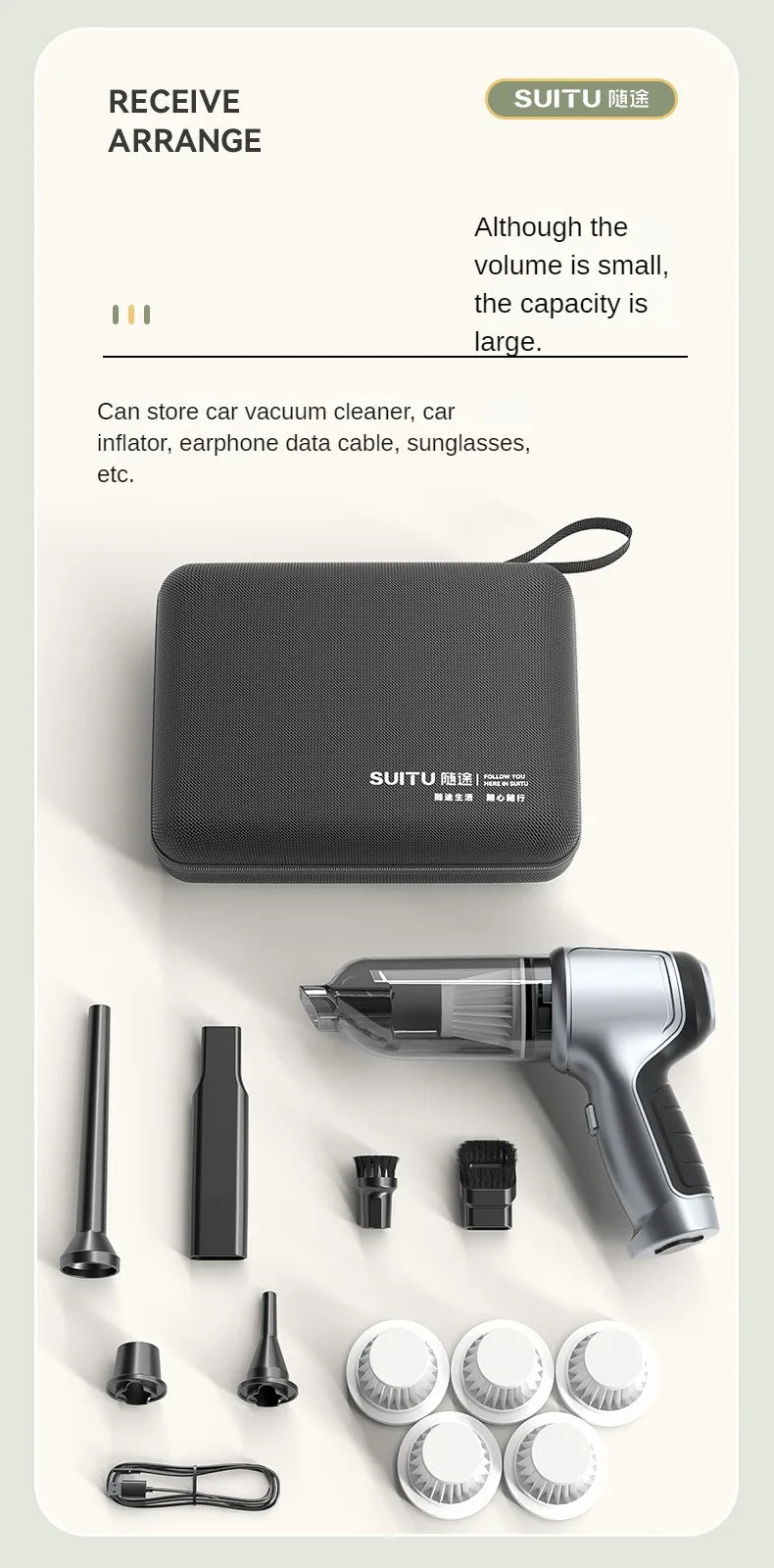Product functions:mainly cleaning cars, vacuuming, blowing dust, blowing balloons and so on