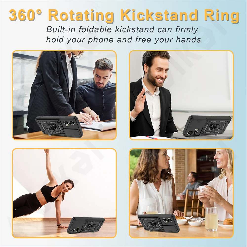 Case For Motorola Moto Edge 50 Pro Fusion 40 Neo G84 G54 4G Pro G34 G53 Camera Lens Cover Phone Case Ring Stand rotate Cover