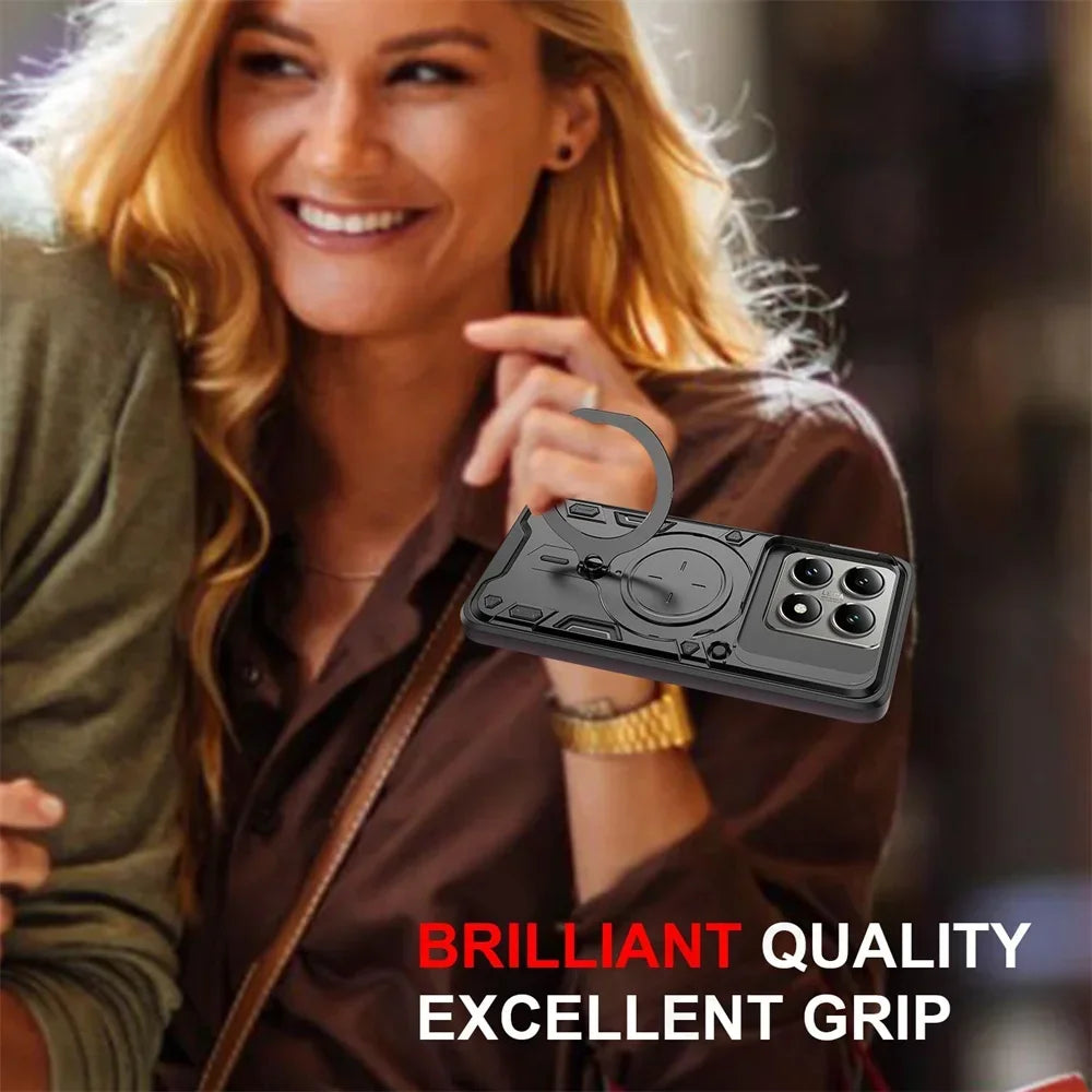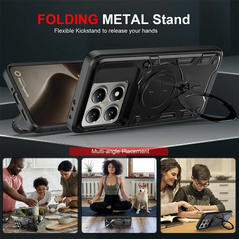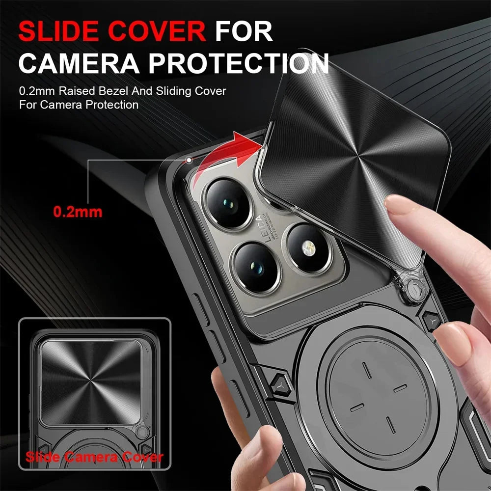 Case For Xiaomi 14T Redmi Note 13 Pro Plus 4G 5G Redmi Note 13 Pro Magnetic Rotat Camera Slide Protector Ring 360 Stand Cover