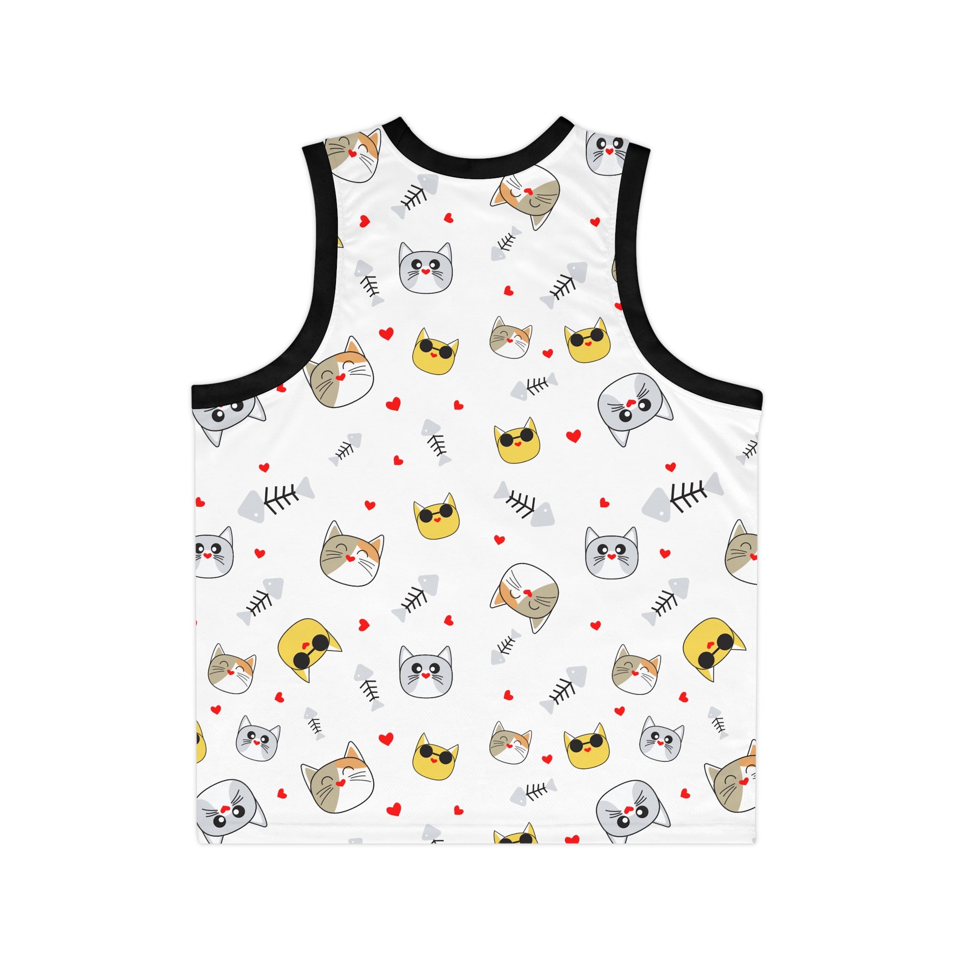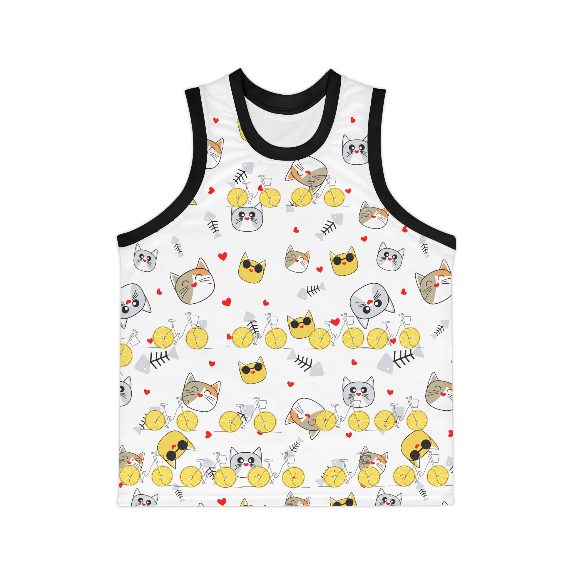 Cat and Bicycle Print Basketball Jersey, Sports Fan Gift, Casual Wear,