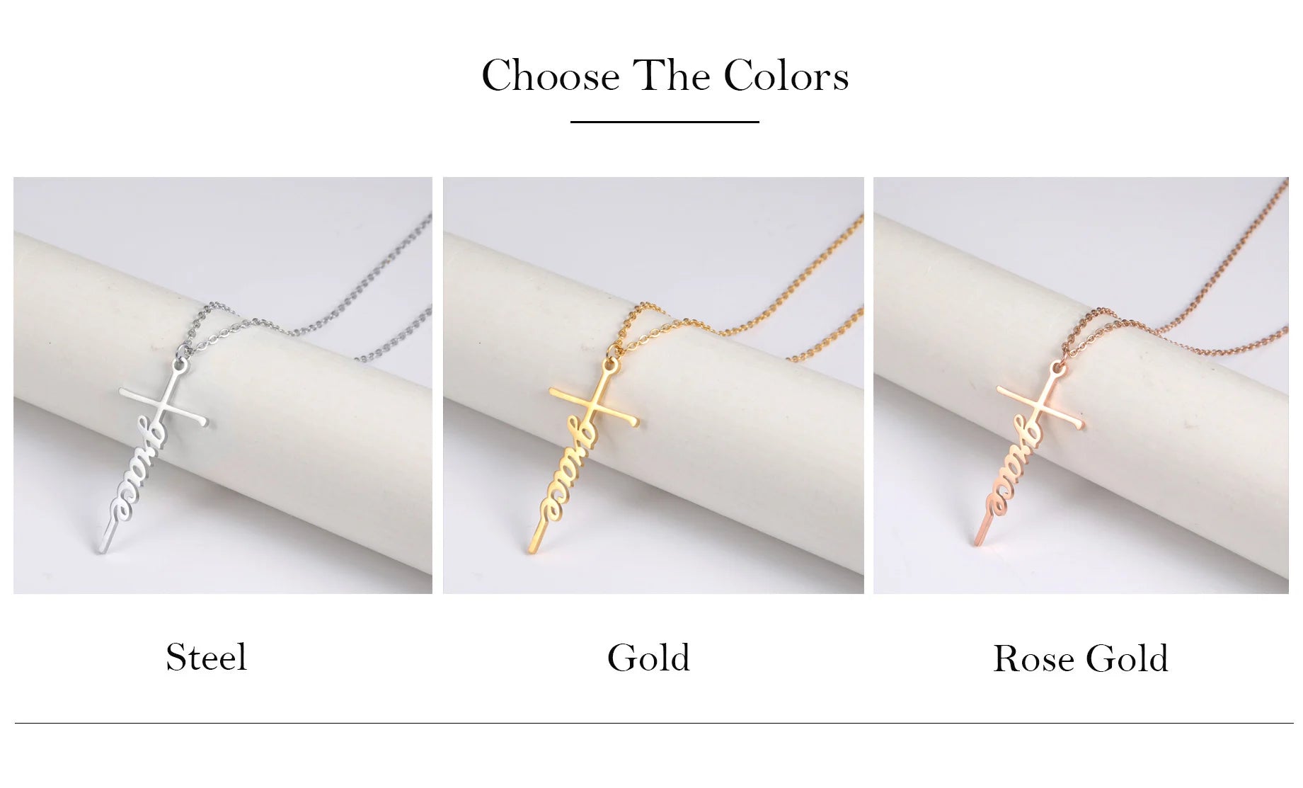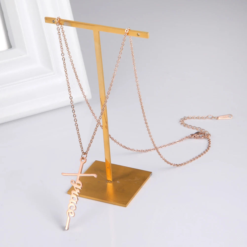 Cazador Custom Name Cross Pendant Necklace Stainless Steel Personalized Jewelry Chain on the Neck New Year Valentine's day Gifts