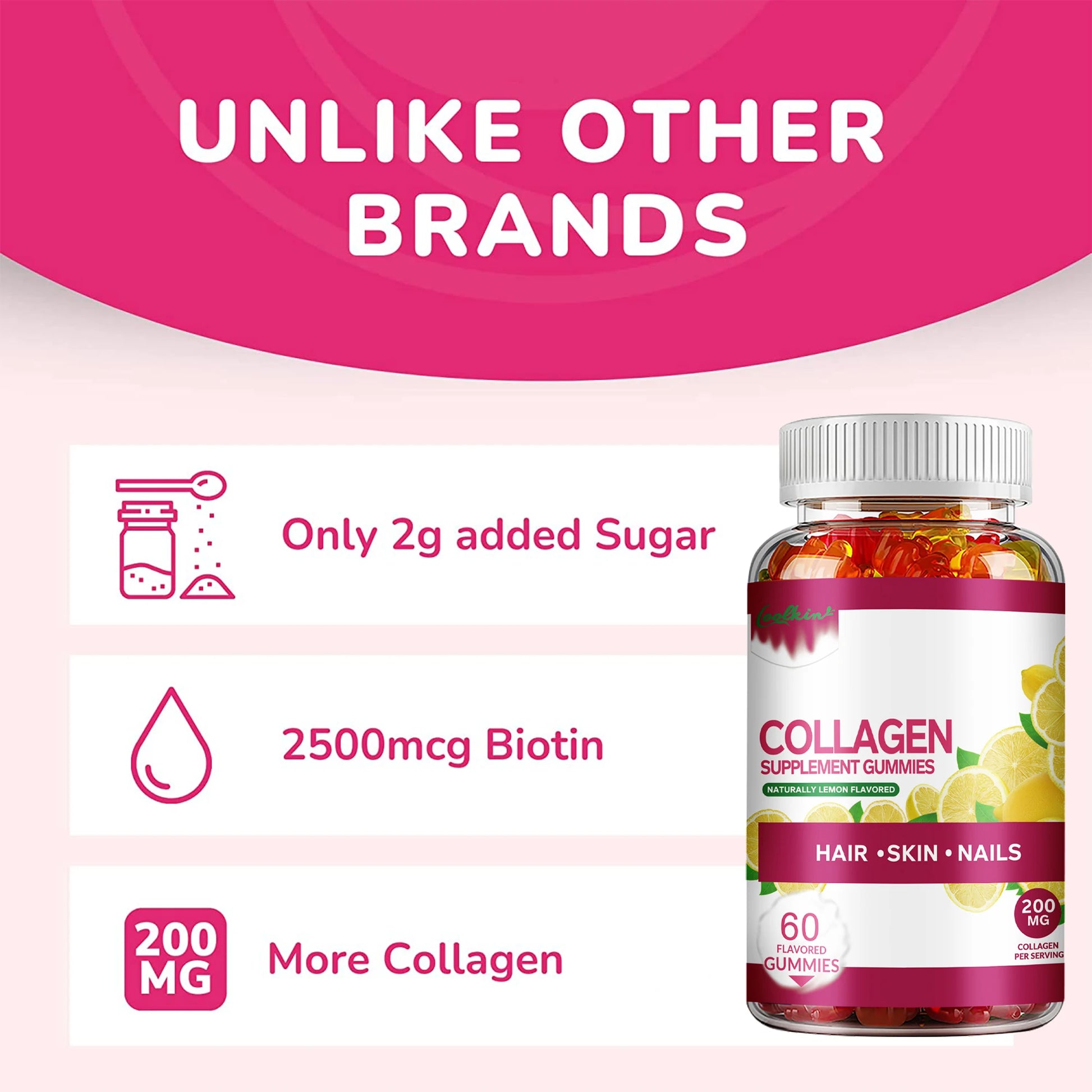 Look younger and feel better - Collagen Gummies help you achieve a youthful glow. Deeply nourishes your skin to support its elasticity and help reduce wrinkles.