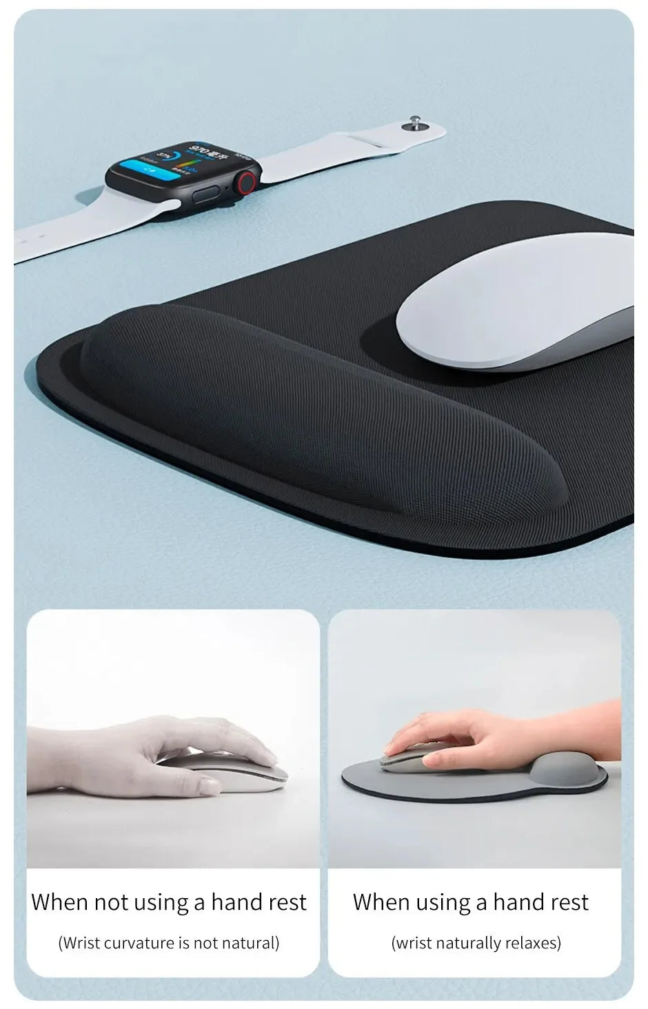 Wrist Pad Mouse pads provide additional support and comfort to reduce wrist fatigue and discomfort caused by prolonged mouse use. The use of the mouse reduces the pressure of the blood vessels in the wrist, very effectively reduces the pressure of the wrist, reduces the risk of suffering from the mouse hand, and makes the wrist more relaxed.