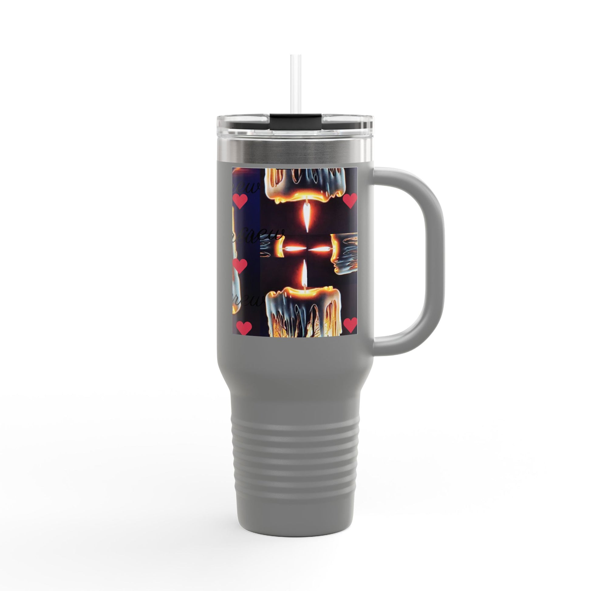 Cozy Candle-Inspired Insulated Travel Mug, 40oz - Perfect for Coffee Lovers, Gifts for Her, Home Office, Outdoor Adventures, and Cozy Days