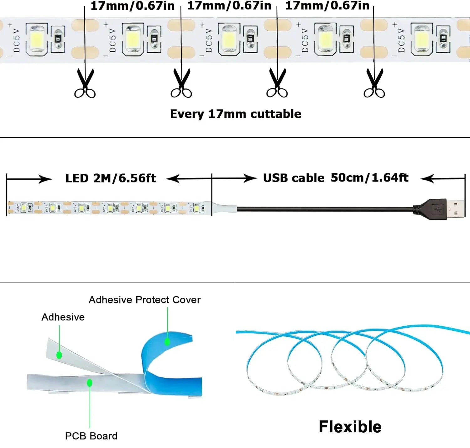 DC 5V USB LED Strips 2835 White Warm White Led Strip Light TV Background Lighting Tape Home Decor Lamp 1M 2M 3M 4M 5M led strip