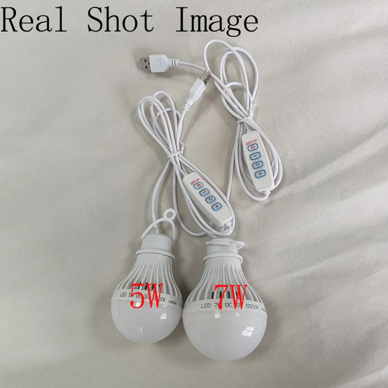 DC5V Led Camping Light 5W/7W Usb Emergency Bulb 3-color Dimmable Hanging Tent Light Barbecue Fishing Repair Outdoor Equipment