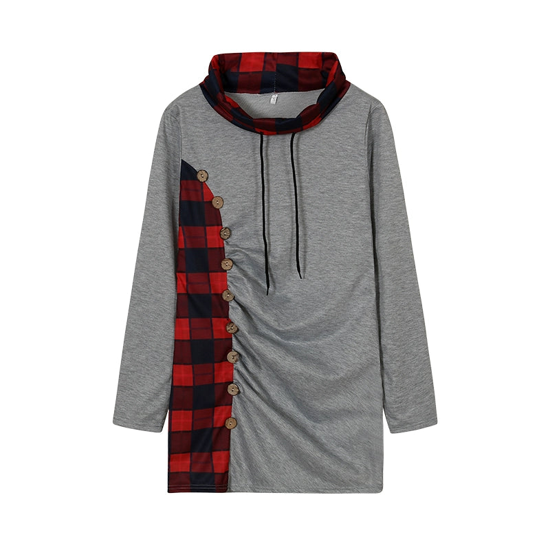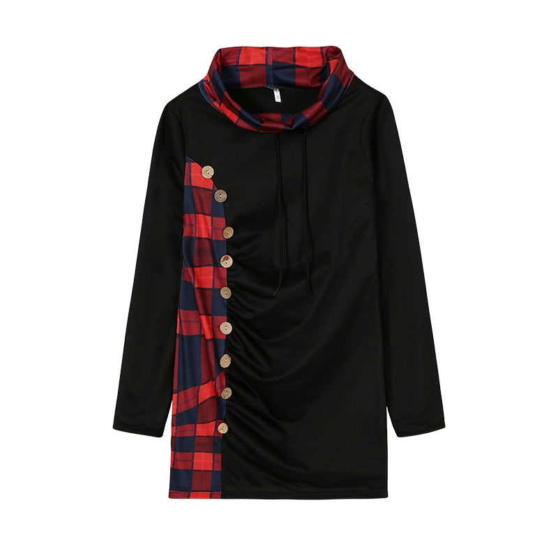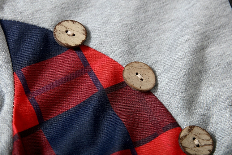 Fashion New Style Plaid Button Decoration Package Hip Hoodie