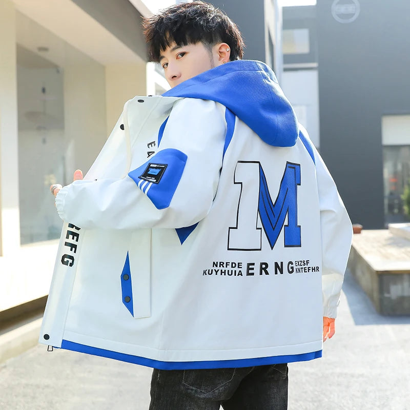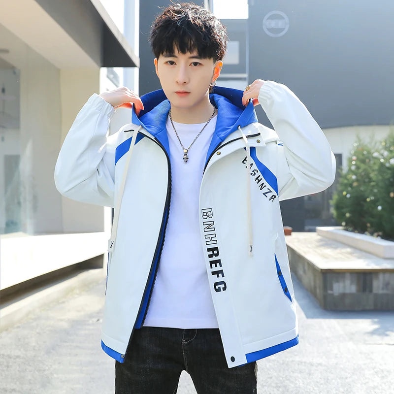 Fashion Spring Autumn Casual Hooded Jacket For Men's Loose Coat Hip Hop Streetwear Zipper Windbreaker Youth Outdoor Top Clothing