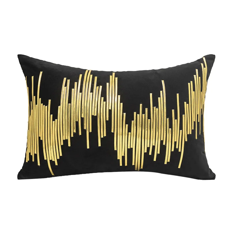 Iterm: Midcentury Modern Faux Gilt Metallic Stripes Decorative Cushion Cover Luxury Velvet Throw Pillow Case For Hotel Villa