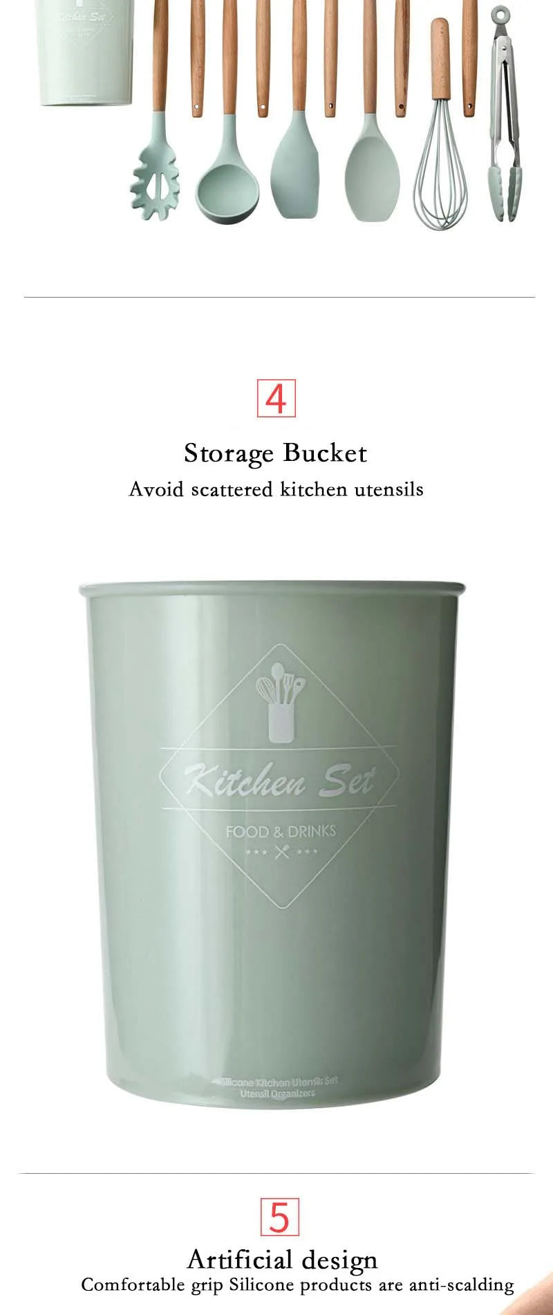 Heat Resistant Silicone Kitchenware Cooking Utensils Set Kitchen Non-Stick Cooking Utensils Baking Tools With Storage Box Tools