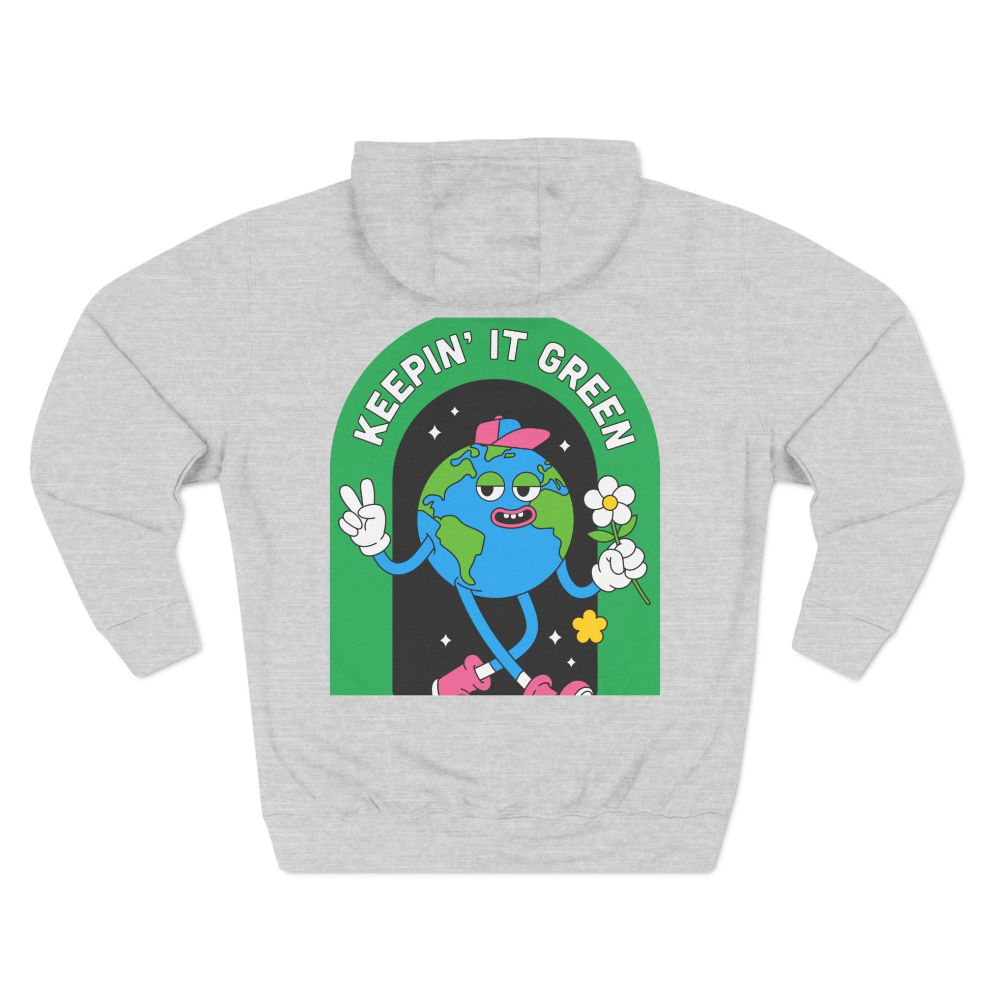 Keep It Green Three-Panel Fleece Hoodie for Eco-Conscious Style