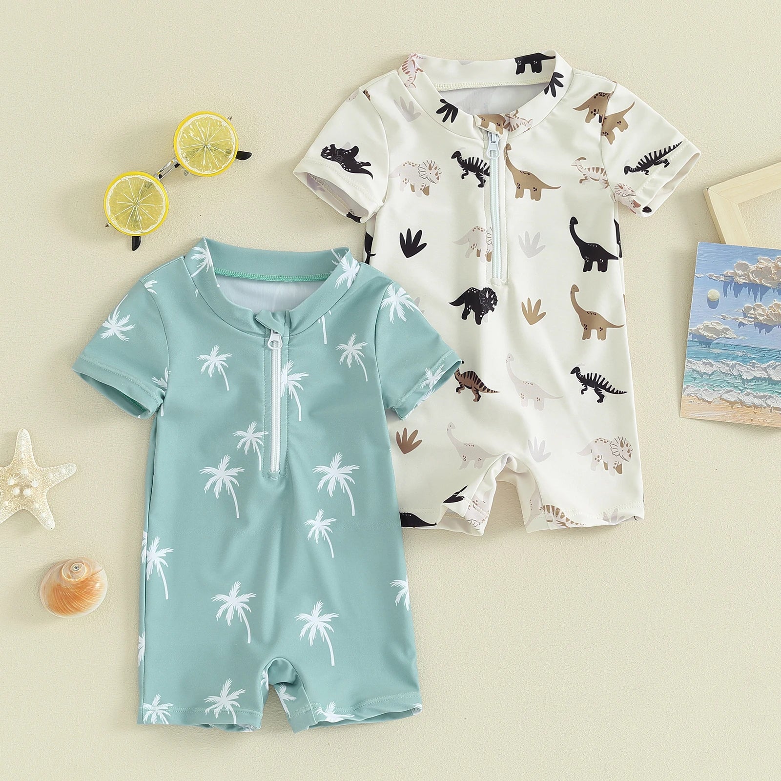 ma&baby 0-3Y Newborn Infant Toddler Baby Boy Girl Swimsuit Dinosaur Coconut Tree Short Sleeve Swimwear Beachwear Bathing Suit