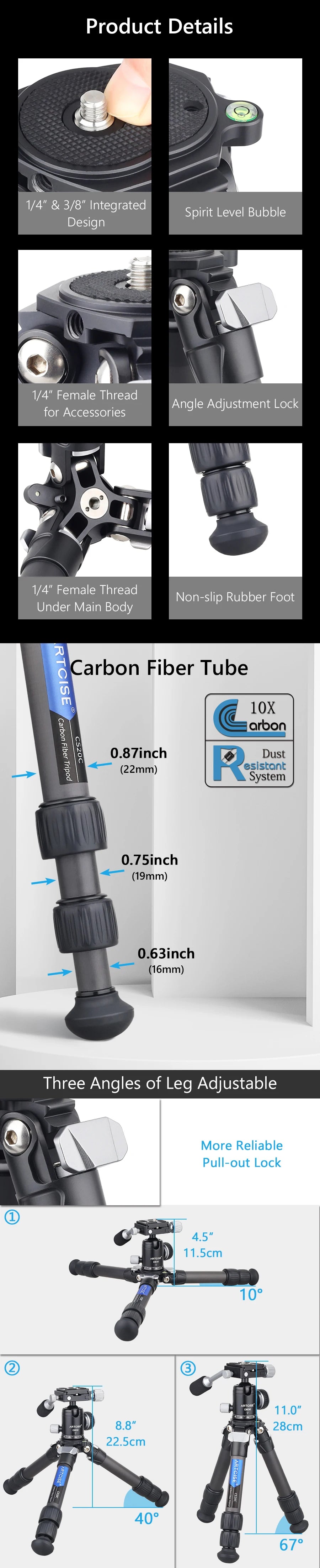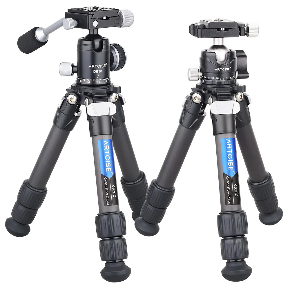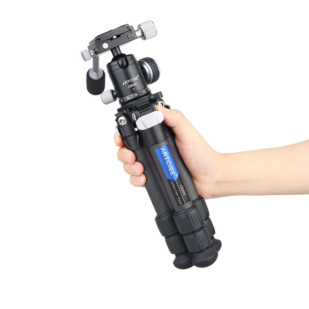 Mini Carbon Fiber Tripod Compact Lightweight Portable Tabletop Tripods with Handle Ball Head Max Load 10kg for DSLR Camera Phone