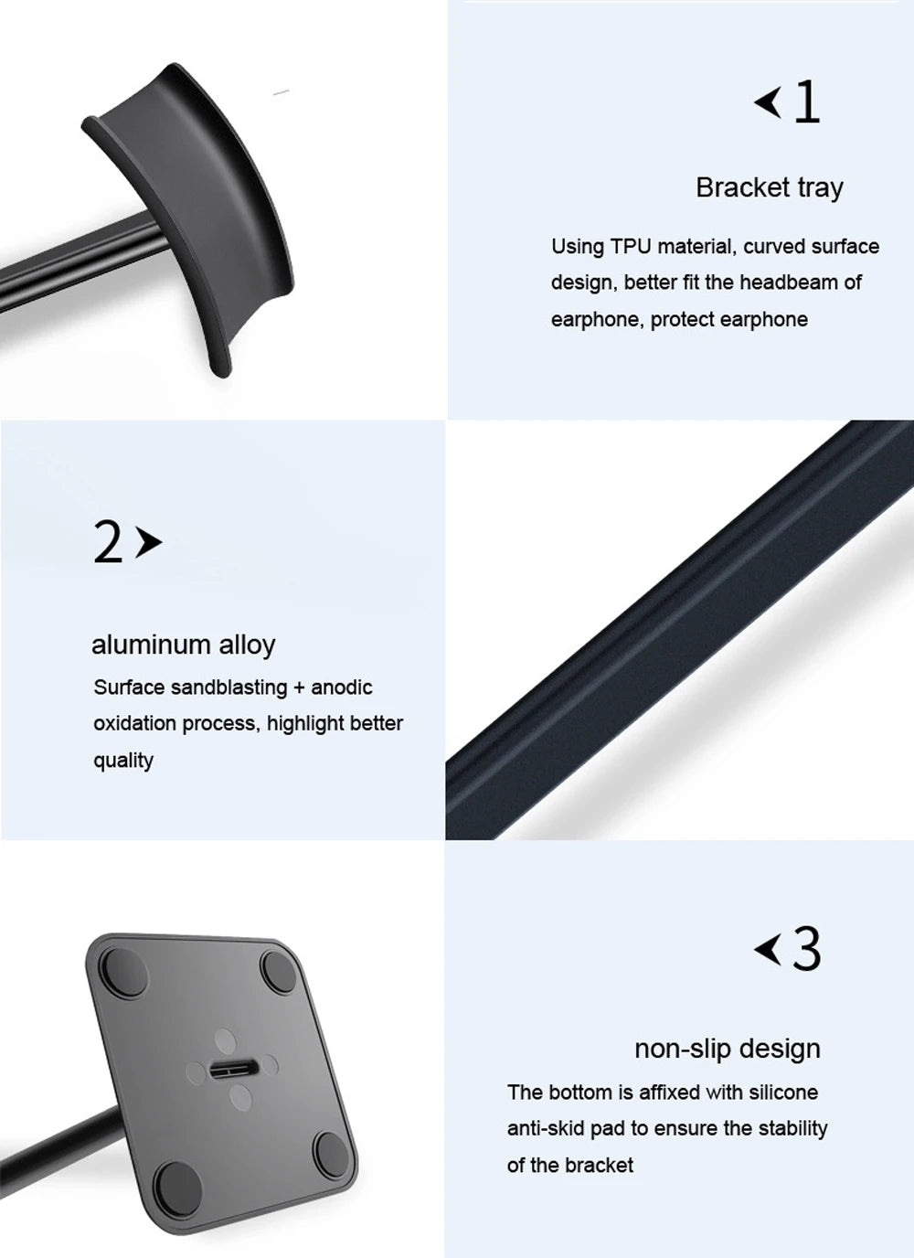 Made of aluminum alloy+ABS material, providing safe and stable protection for your headphone, and keeping the desk neat.