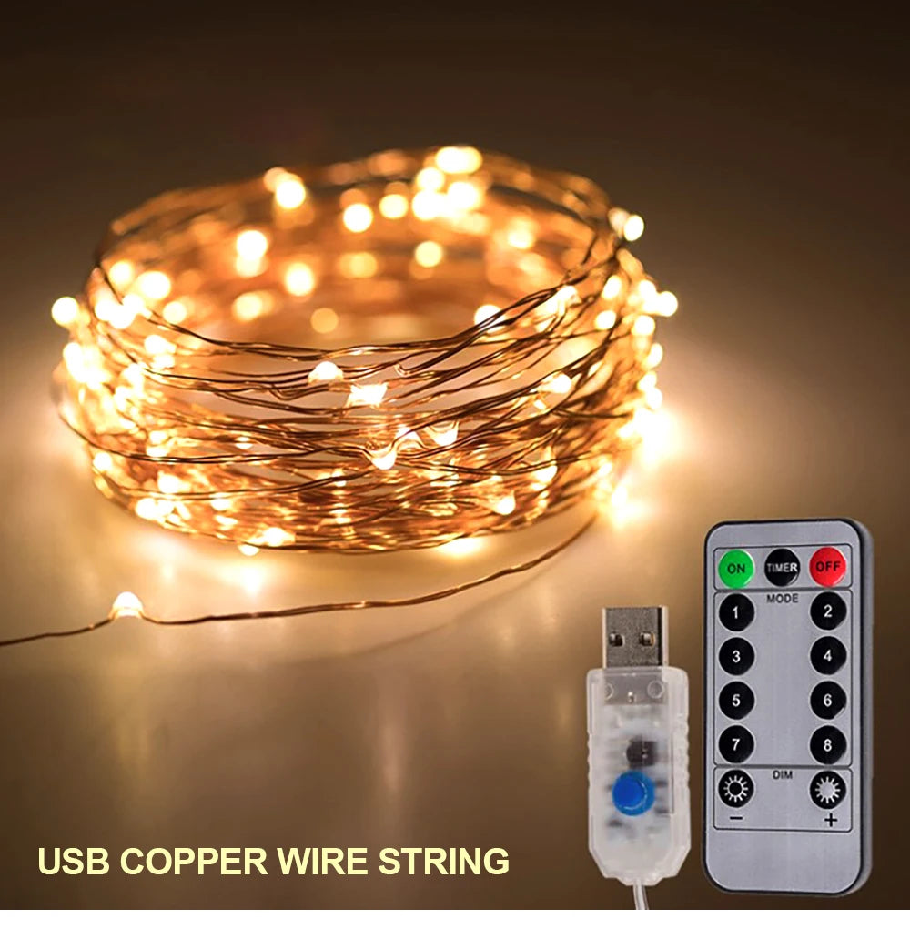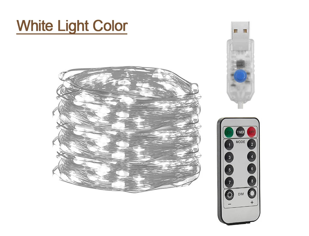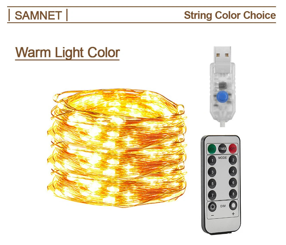 New Year Christmas Decoration Holiday Fairy Lamp Copper Wire USB Led Indoor Home Decor Warm White RGB String With Remote Control