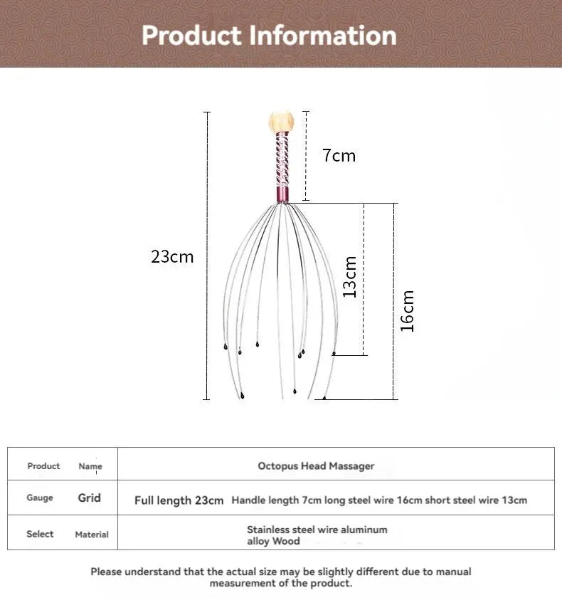 Octopus Head Massager Stainless Steel Engraved Head Relaxer Brain Massage Claw Scalp Scratcher Itch Reliever