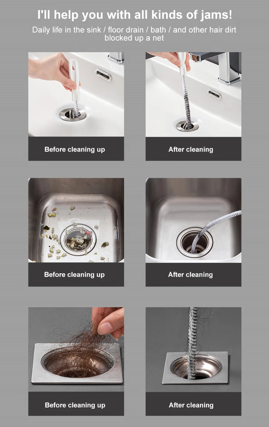 3. Effective cleaning: The sink cleaning brush can effectively clean the garbage in the water pipe or sink. Easy access to hard-to-reach spaces and easy removal of rubbish in pipes. There is no more trouble blocking the sink.