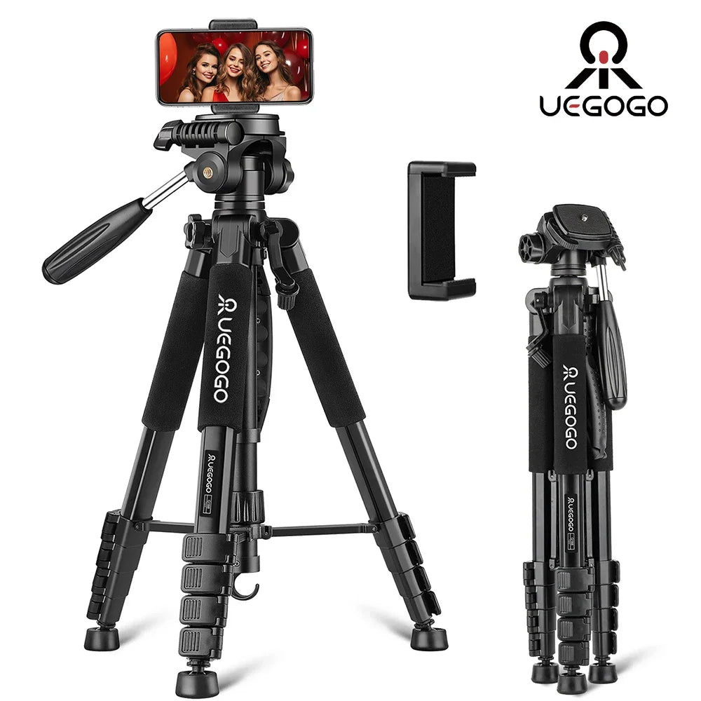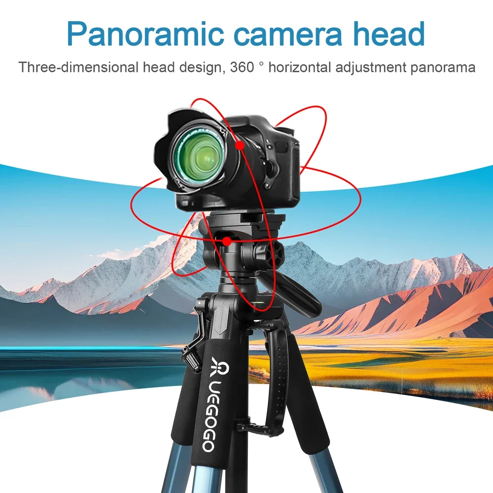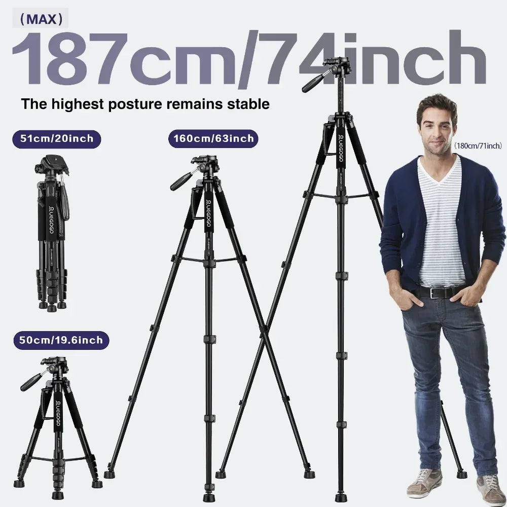 Q188 187cm/73in Tall Tripod Stand for Professional Camera Spotlight Telescope Binoculars 360° Rotatable Phone Holder for Video