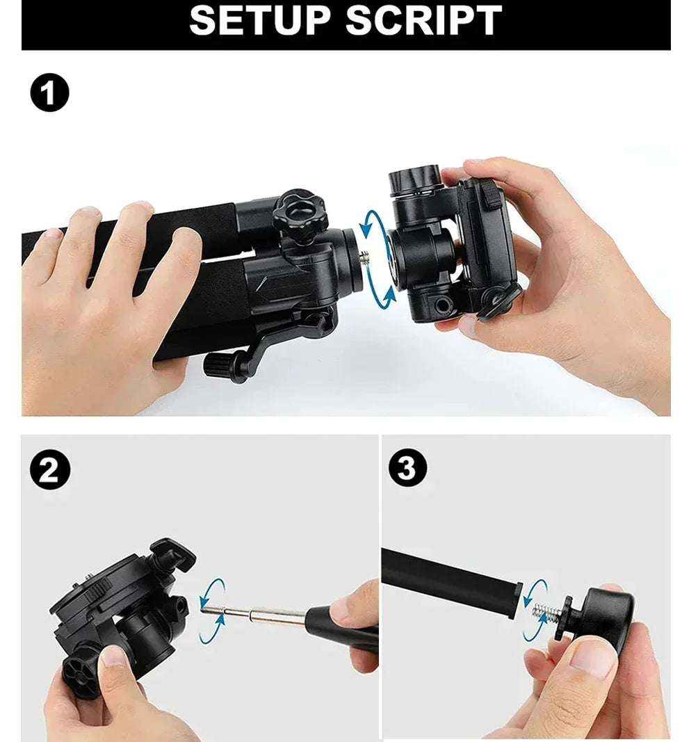 Aluminum alloy is the main material, and the gimbal uses special fiber-added and weight-reducing process ,it's easier to carry