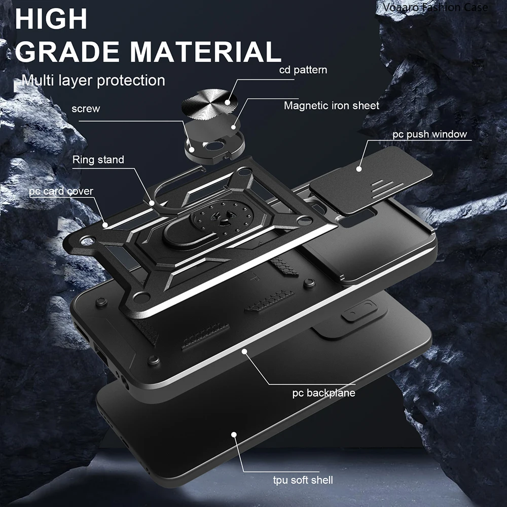 Slide Lens Camera Protect Armor Funda for Infinix Smart 9 Case Magnetic Rotate Ring Stand Holder Cover for Infinix Hot 50i Case