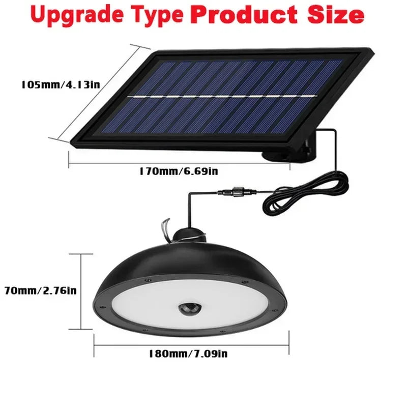 SOLAR LED PENDANT LIGHT: The solar LED light is operated during the day by sunlight with a solar collector by storing electricity with a built-in lithium battery, lights up automatically in the dark and dimmed at sunrise. Comes with remote control for easy and convenient use. Solar module made of polycrystalline silicon, conversion rate up to 18%, absorption of more light and faster charging.