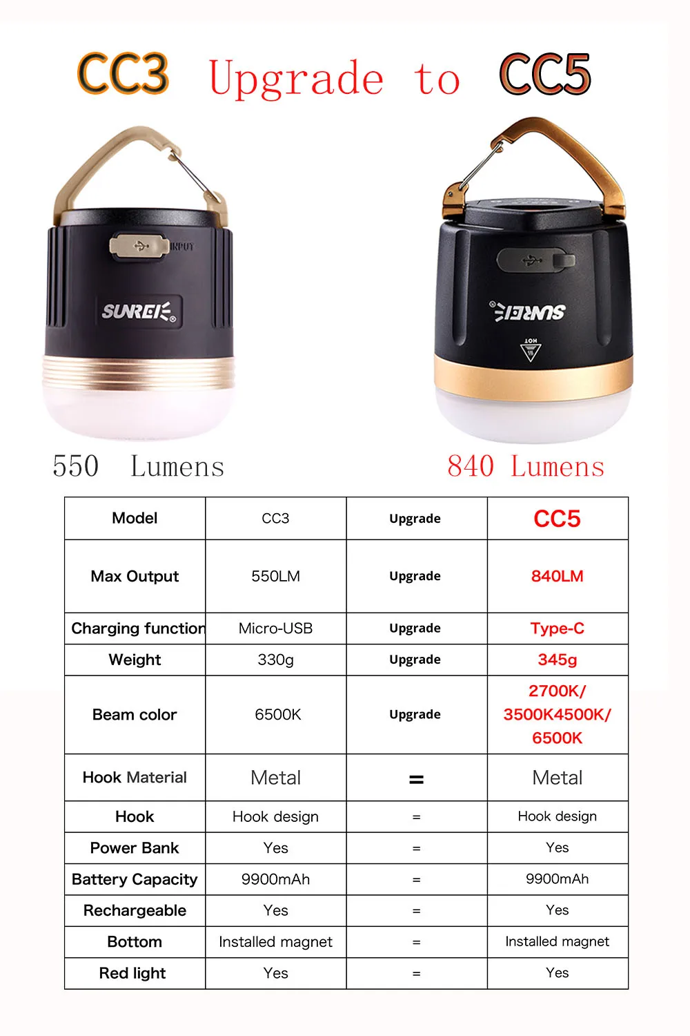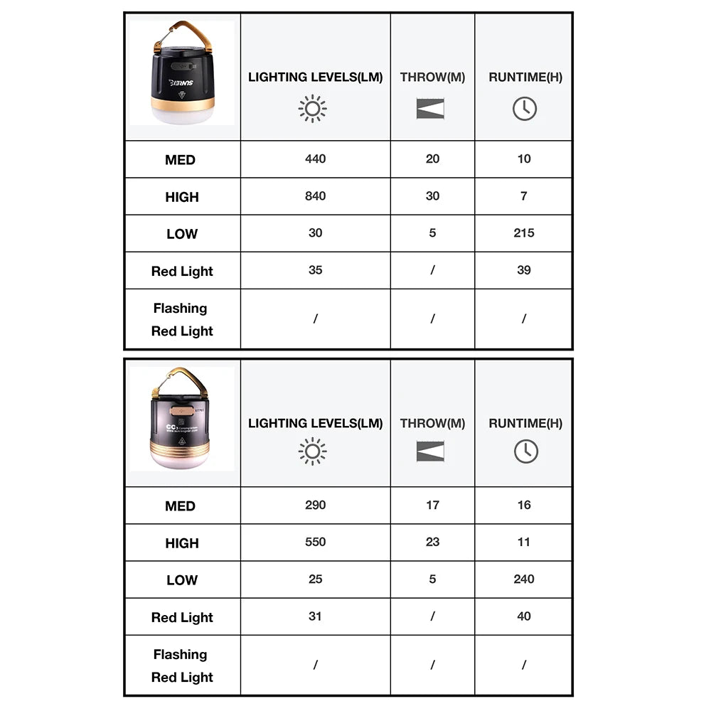 SUNREE CC3 CC5 Camping Lantern 840 Lumens LED Camping Light USB Rechargeable 9900mAH Battery outdoor lighting For Power Bank