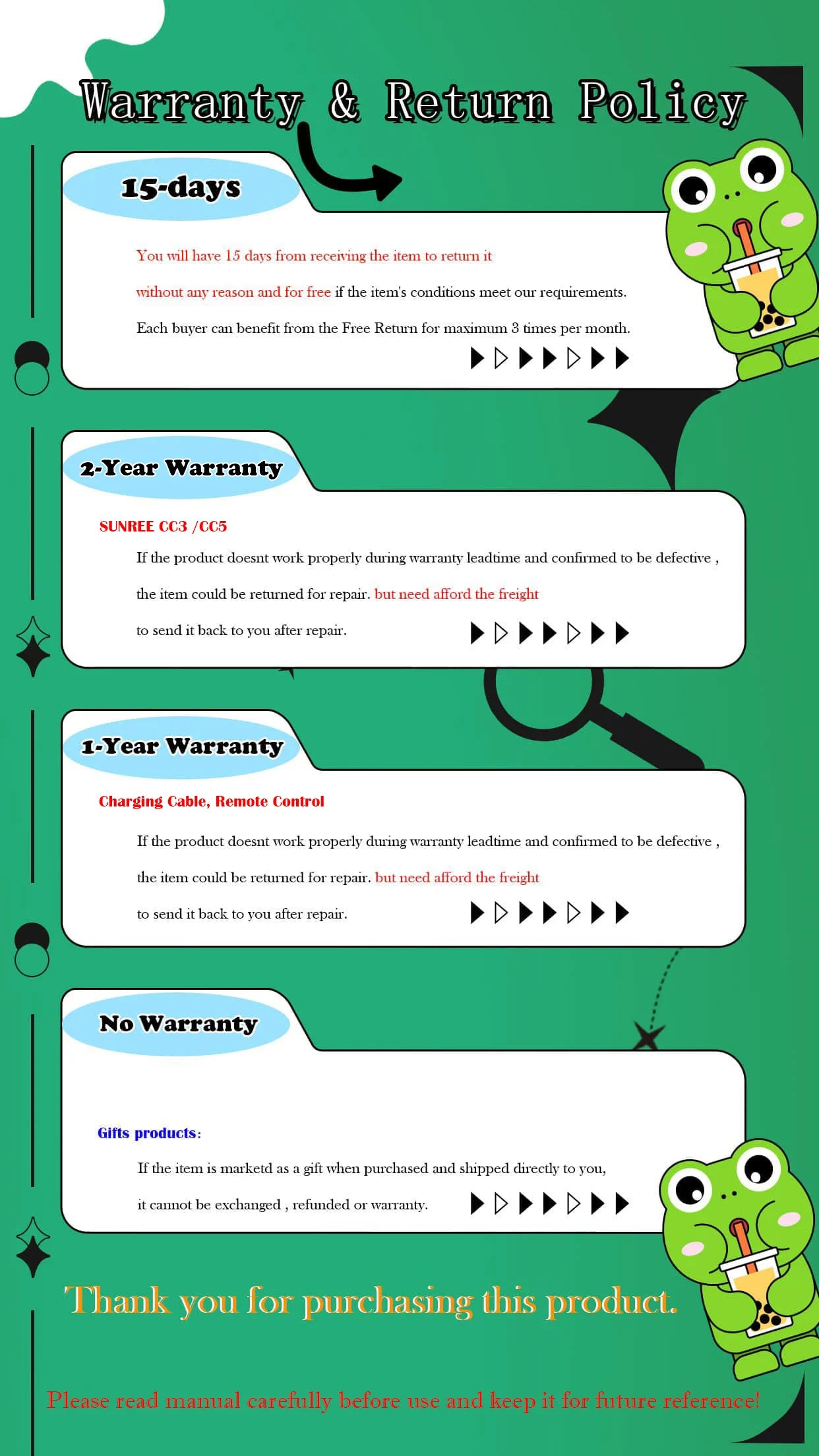 - Comfortable rubber Remote Control, let you select high, middle, low, strobe modes, red light or white light conveniently as you like