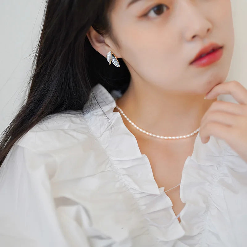 Sweet Leaf Stud Earrings For Women Fresh Blue And White Plant Ear Stud Exquisite Metal Style Earrings Elegant Jewelry Gift