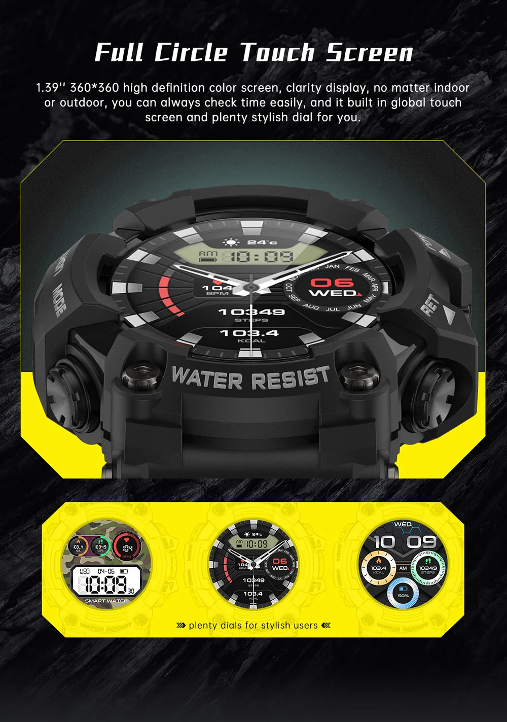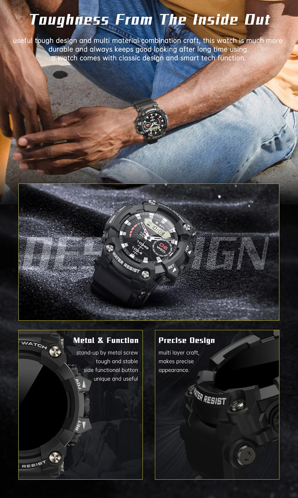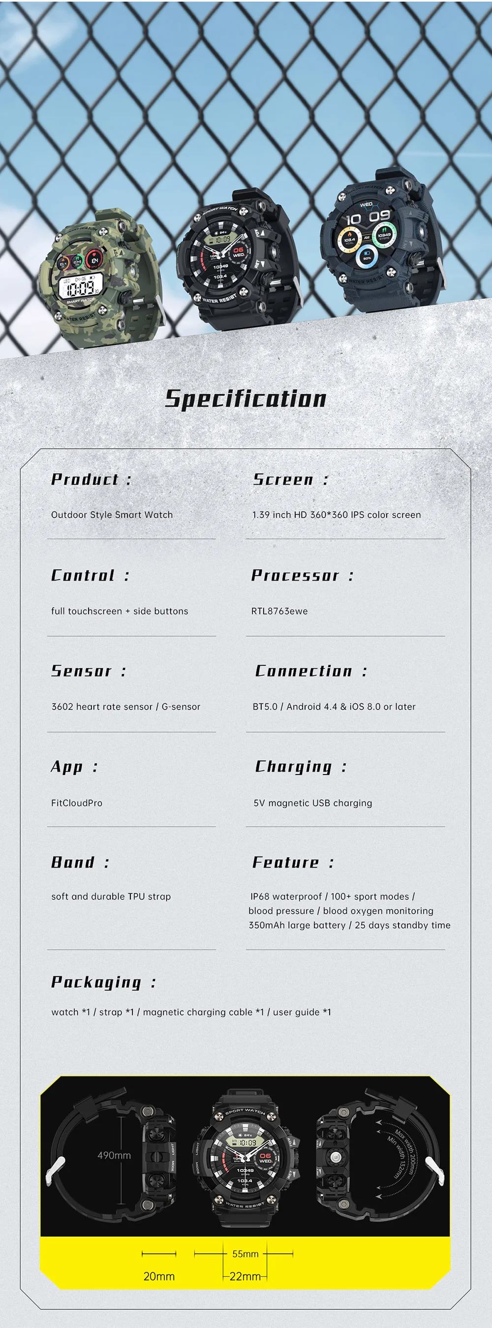 Function: Shock Resistant,Passometer,fitness tracker,sleep tracker,Message Reminder,Call Reminder,Answer Call,Dial Call,Altitude Meter,Chronograph,Alarm Clock,Power Reserve,week,Month,Heart Rate Tracker,Calendar,compass,Calculators