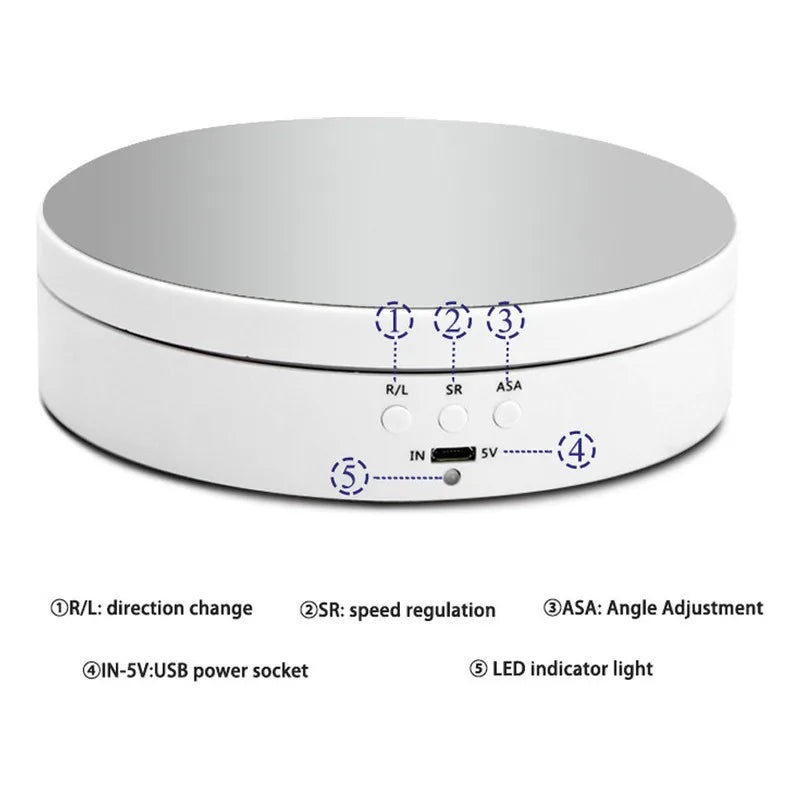Three Speeds Motorised Rotating Mirror Display Stand,360 Degree Turntable, Jewellery Holder,USB Power Supply, Rotating Shooting