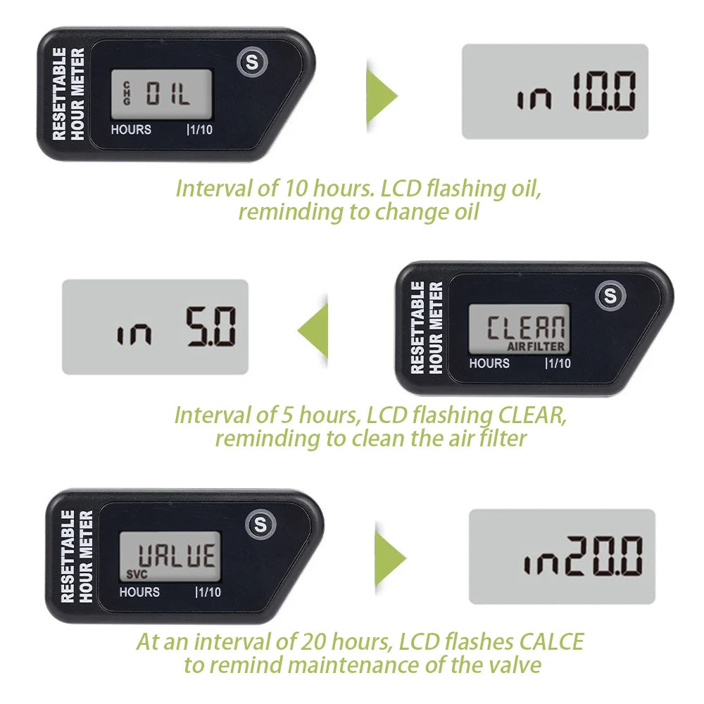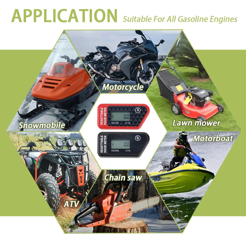 Timer Waterproof LCD Timer Counter Black / Red For Motorcycle/ATV/Powerboat/Law Mower Maintenance Reminder