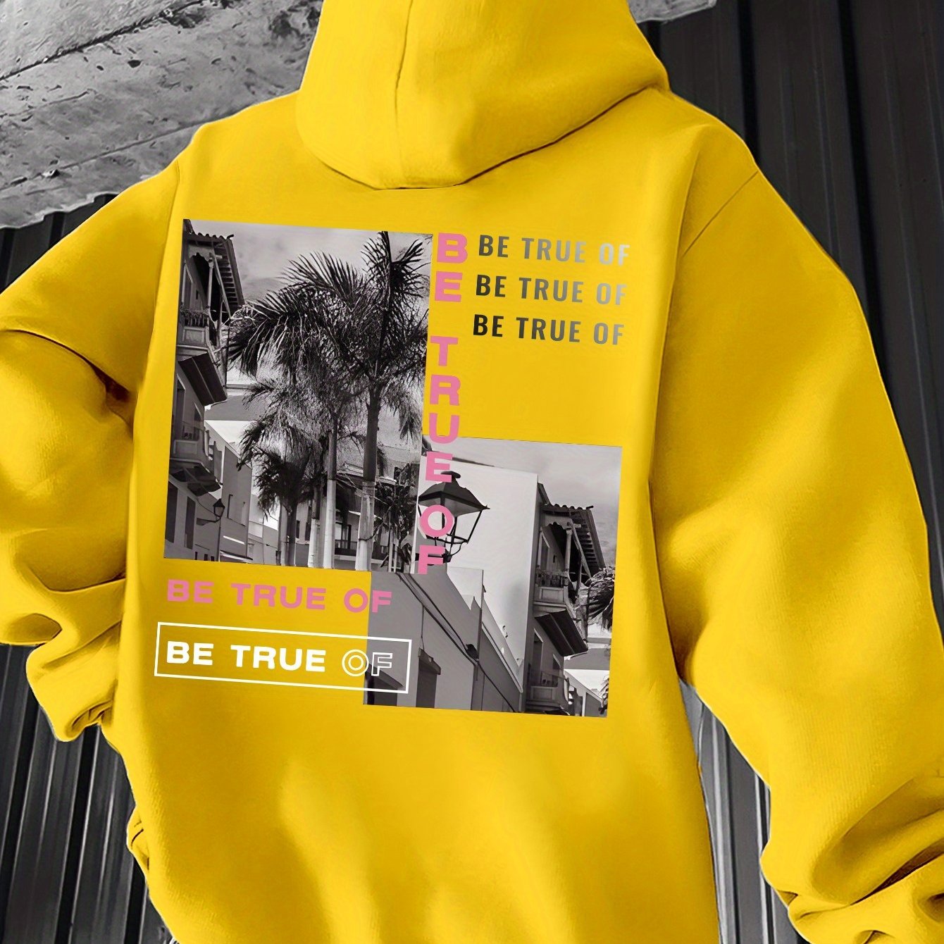 [Trending] Men's Casual Hoodie with Geometric Print - Stretchy Polyester Blend, Machine Washable, Kangaroo Pocket | Perfect for Spring & Fall