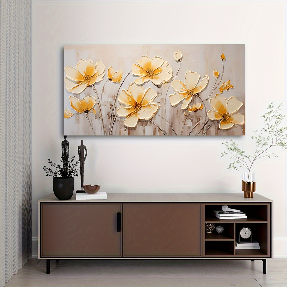 [Trending] Modern Abstract Floral Canvas Art Poster - Yellow Flower Wall Decor, Unframed 19.7x39.3" - Perfect for Bedroom, Living Room, or Hallway